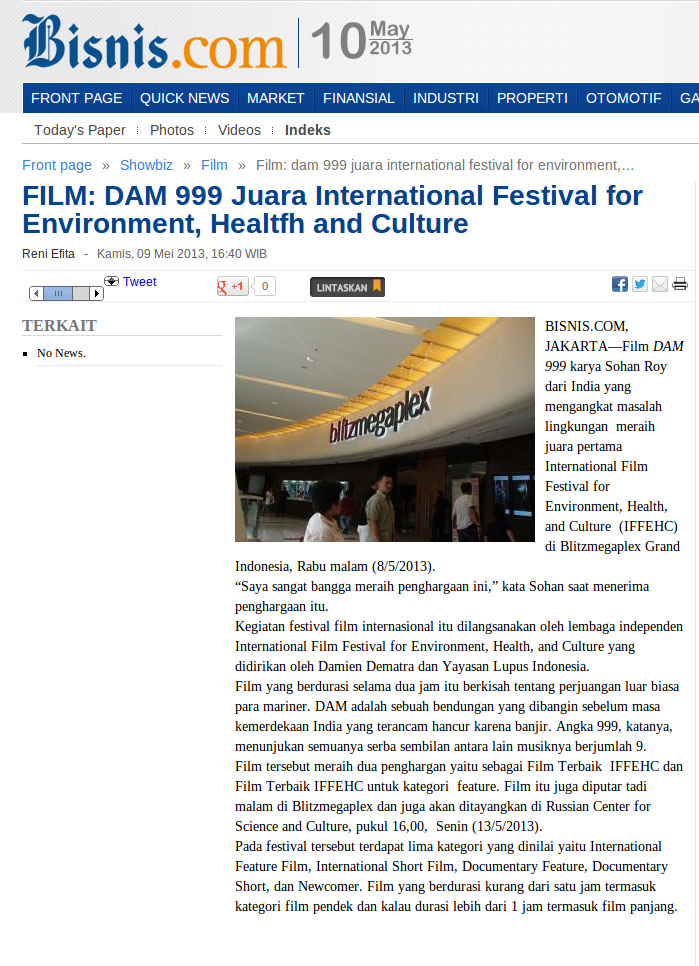 - DAM999' screenplay in Oscar library-Indiavision.com