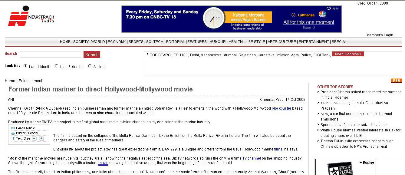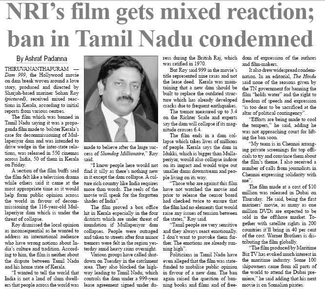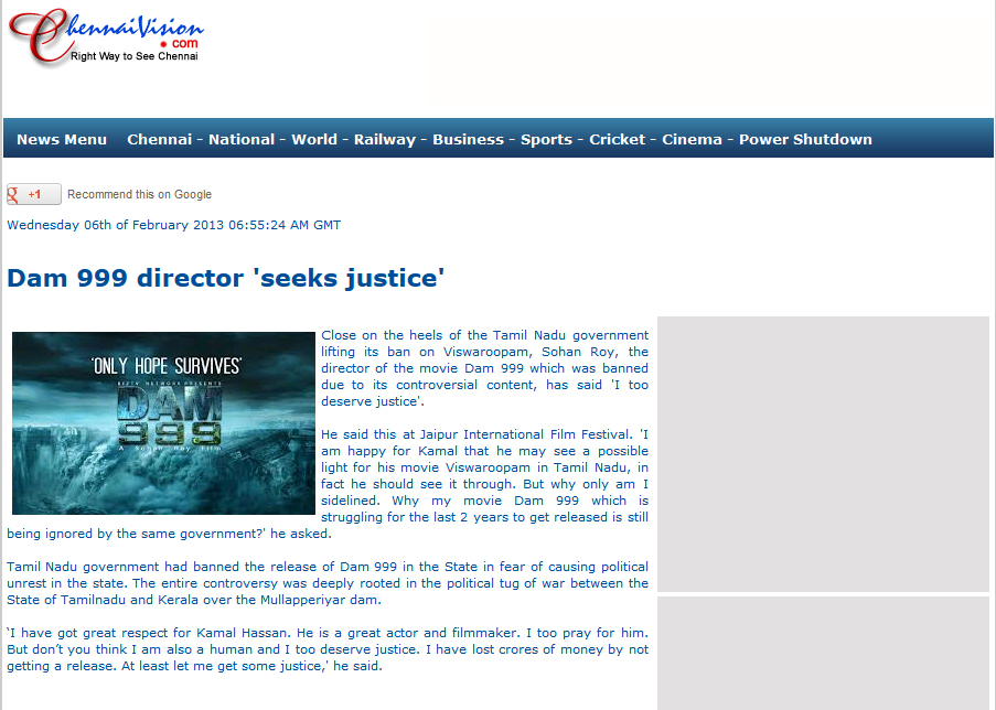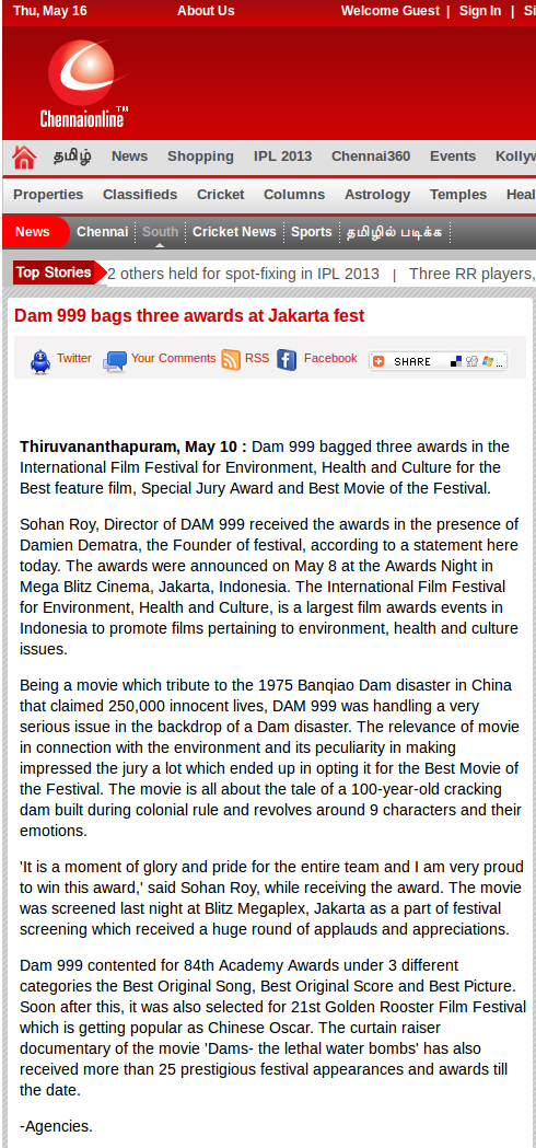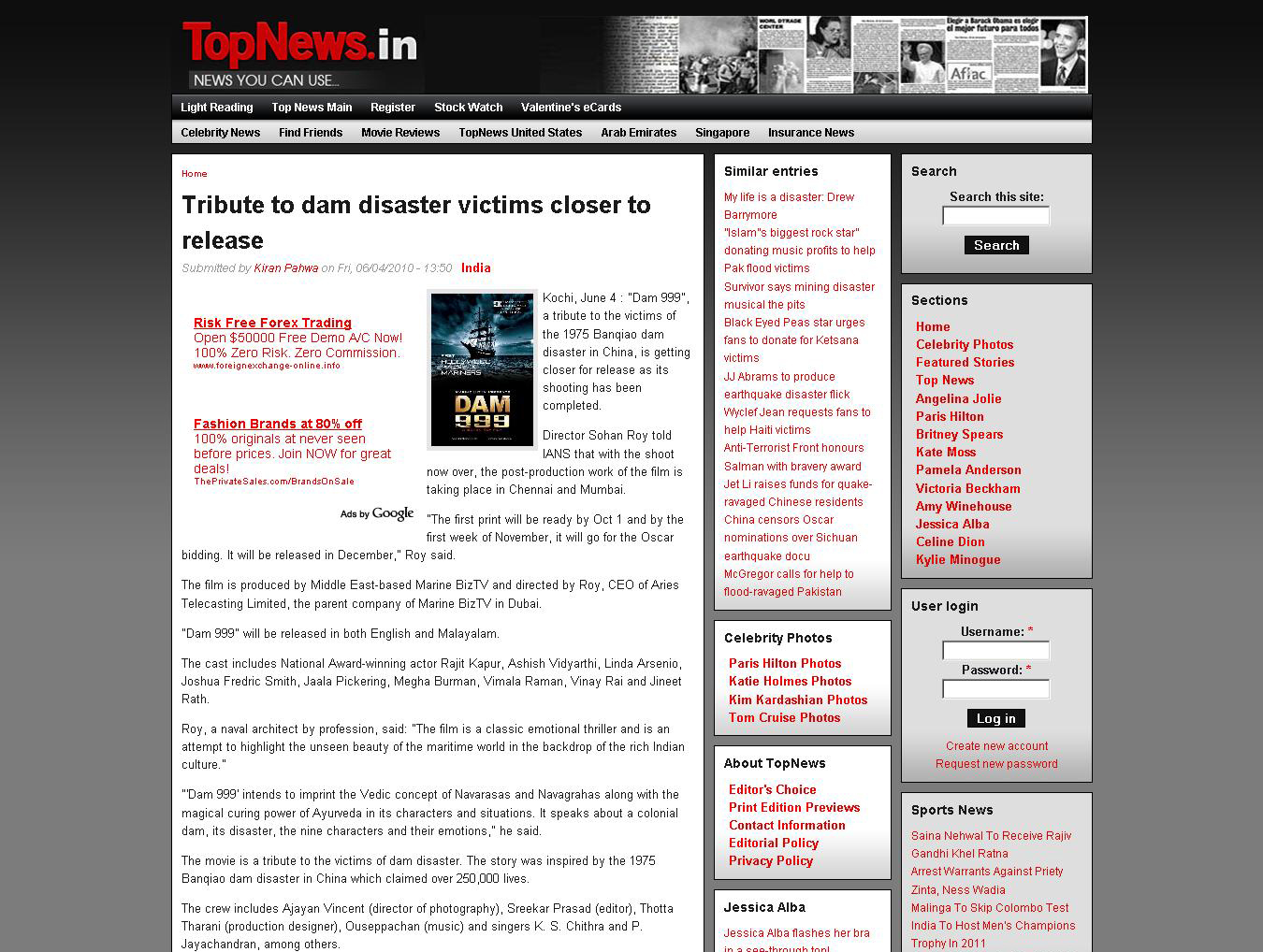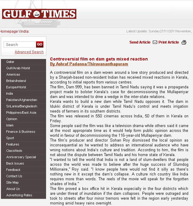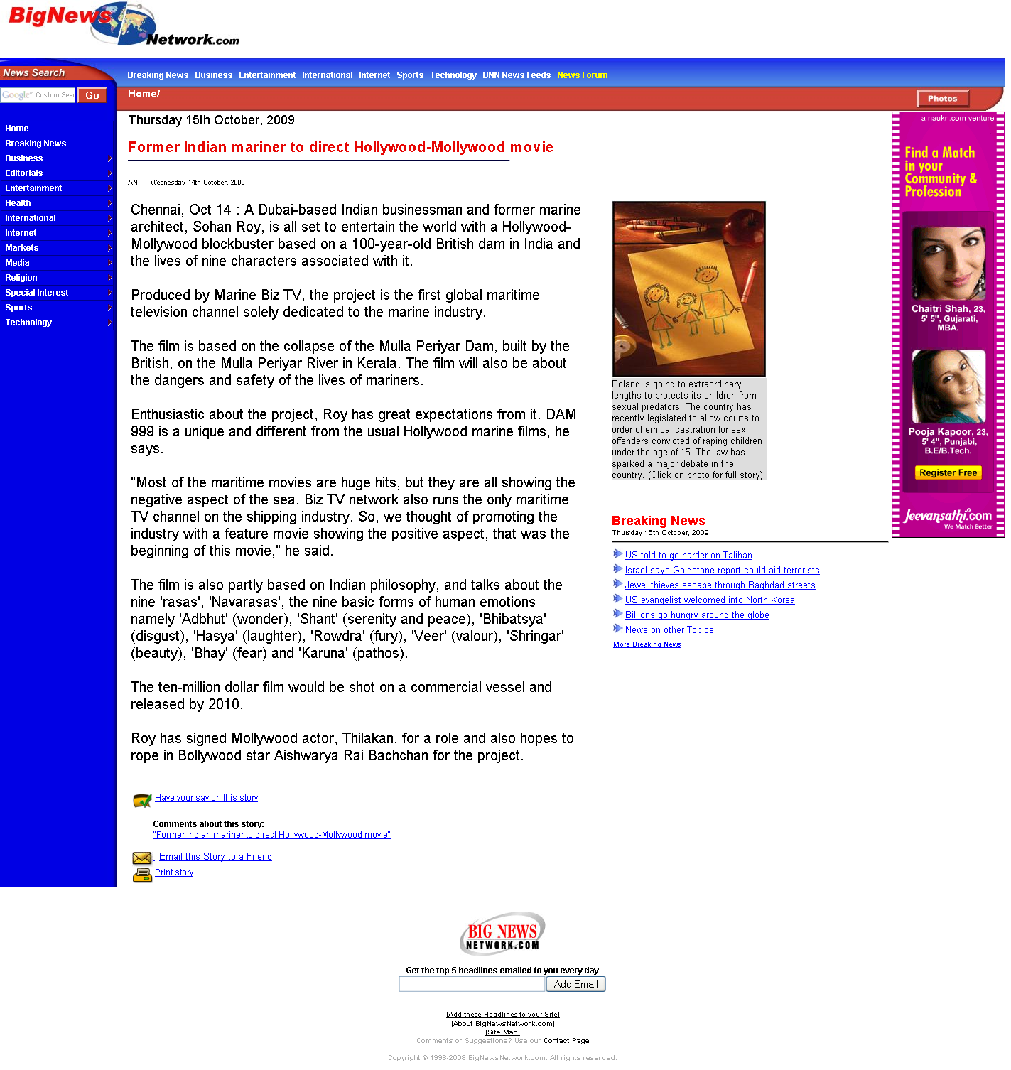 - DAM999' screenplay in Oscar library -Webindia123.com