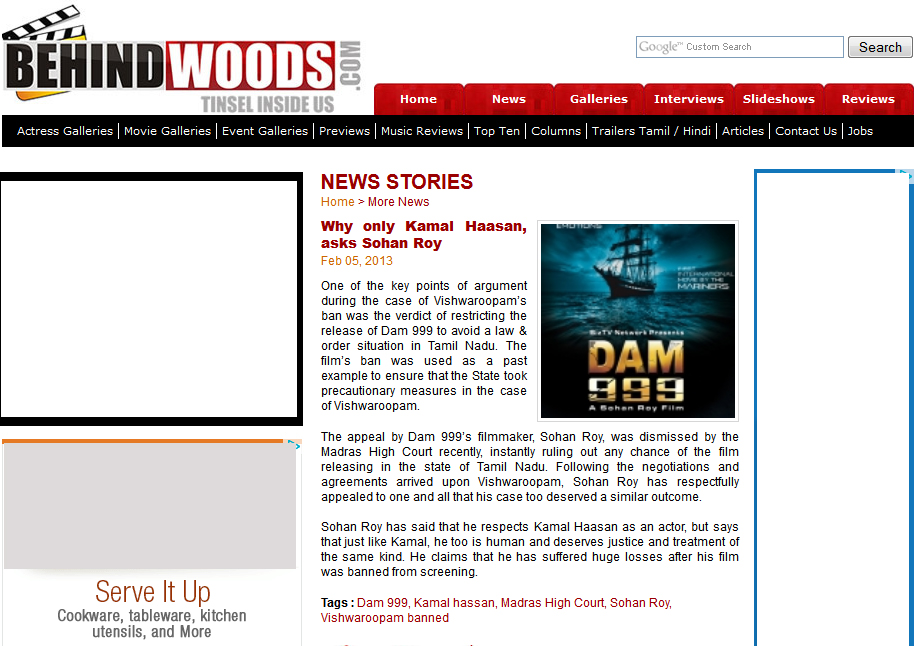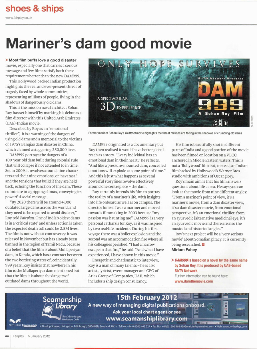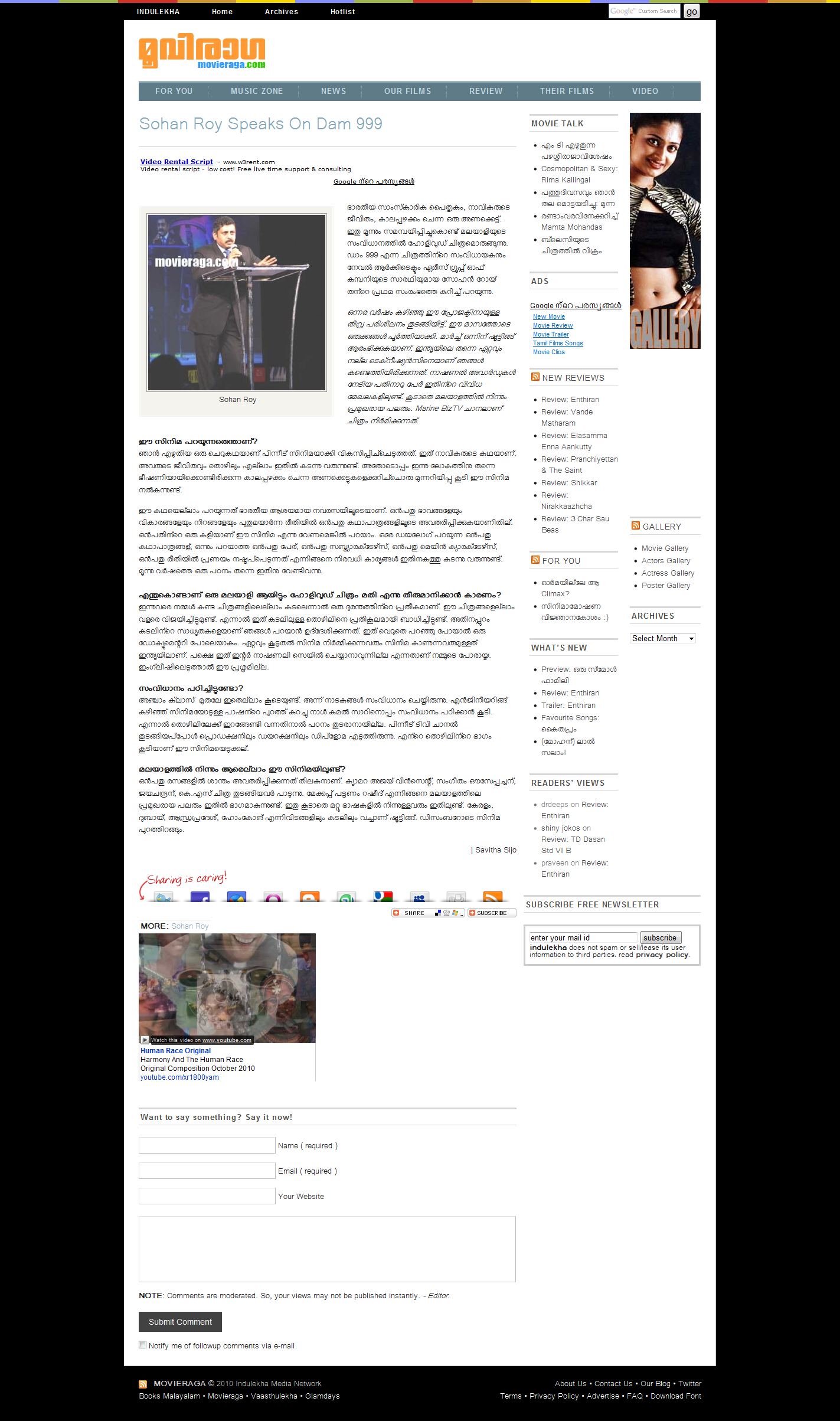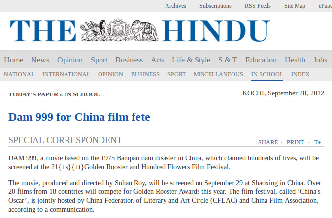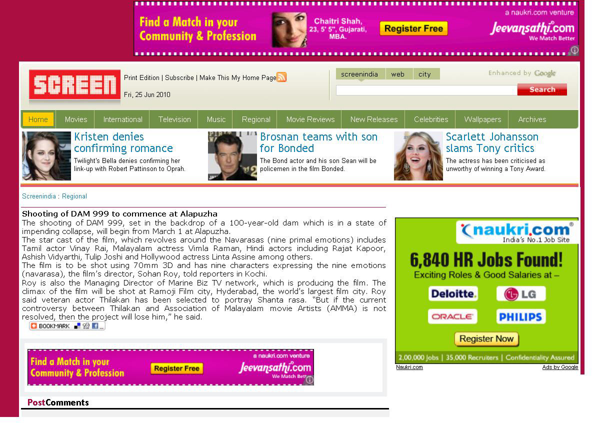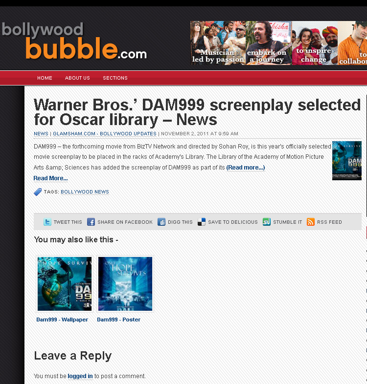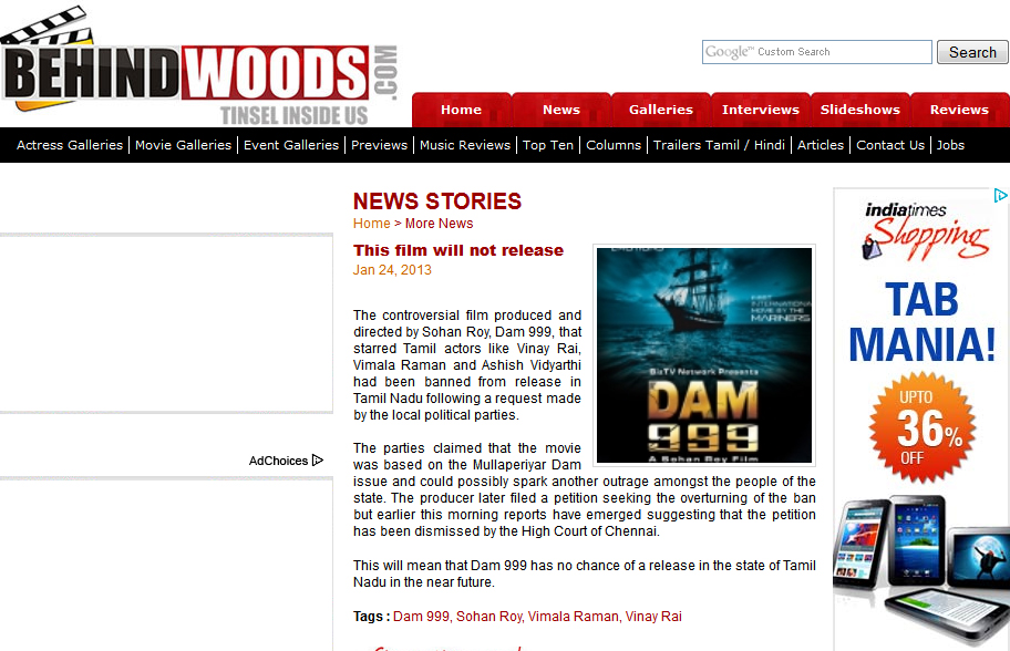 - DAM999' screenplay in Oscar library -Webindia123.com
