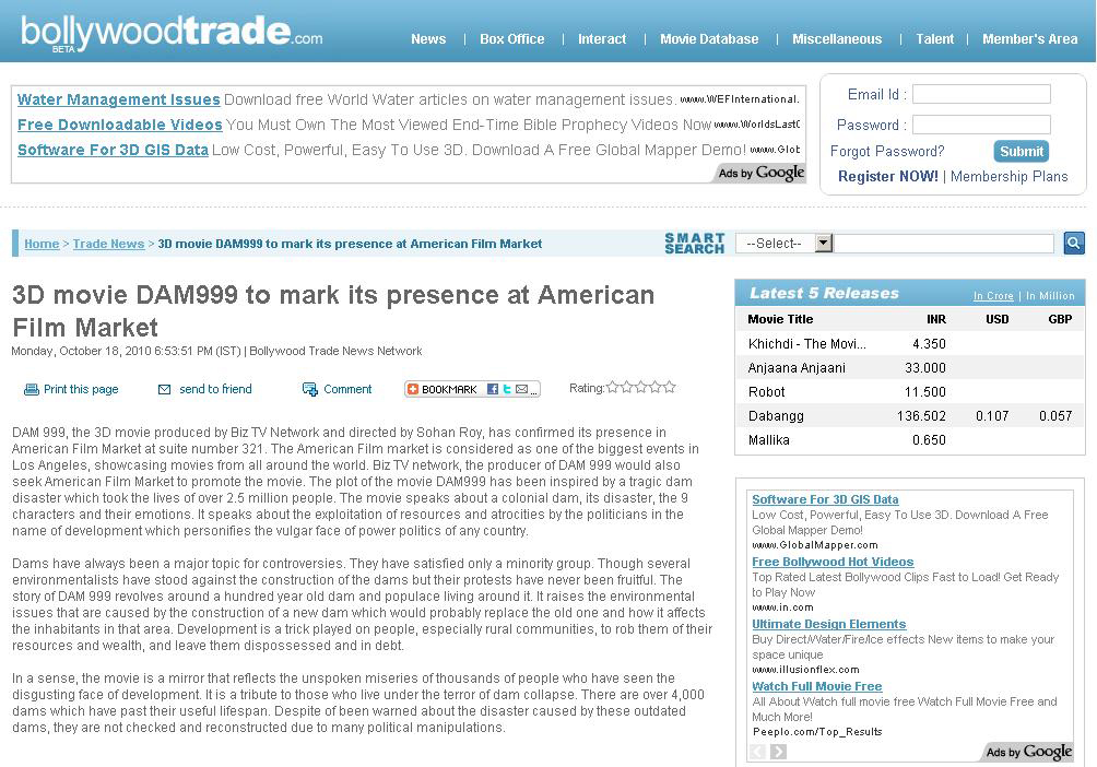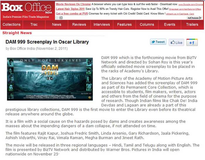 - DAM999' screenplay in Oscar library -Boxofficeindia.co.in