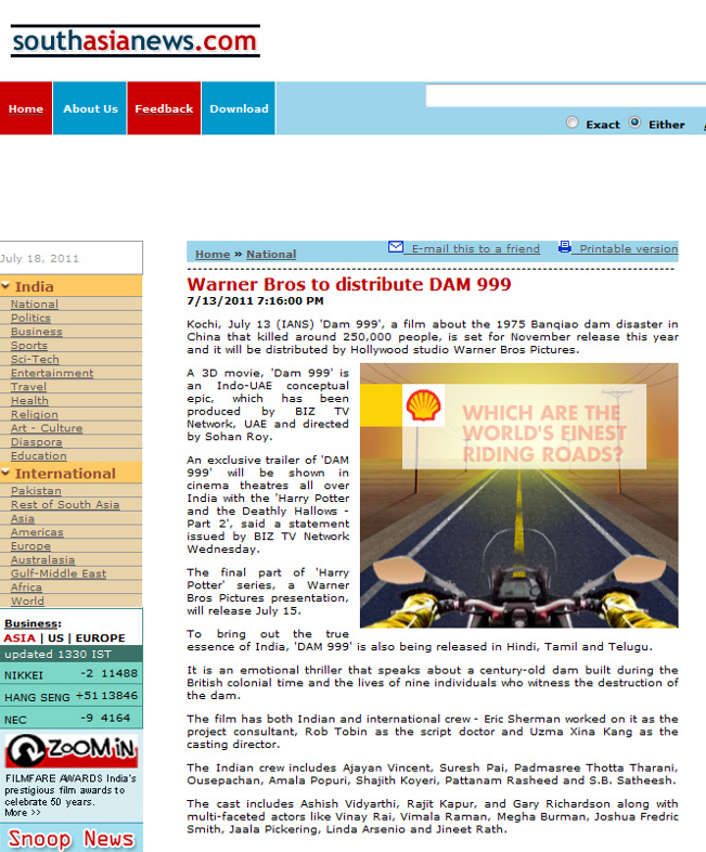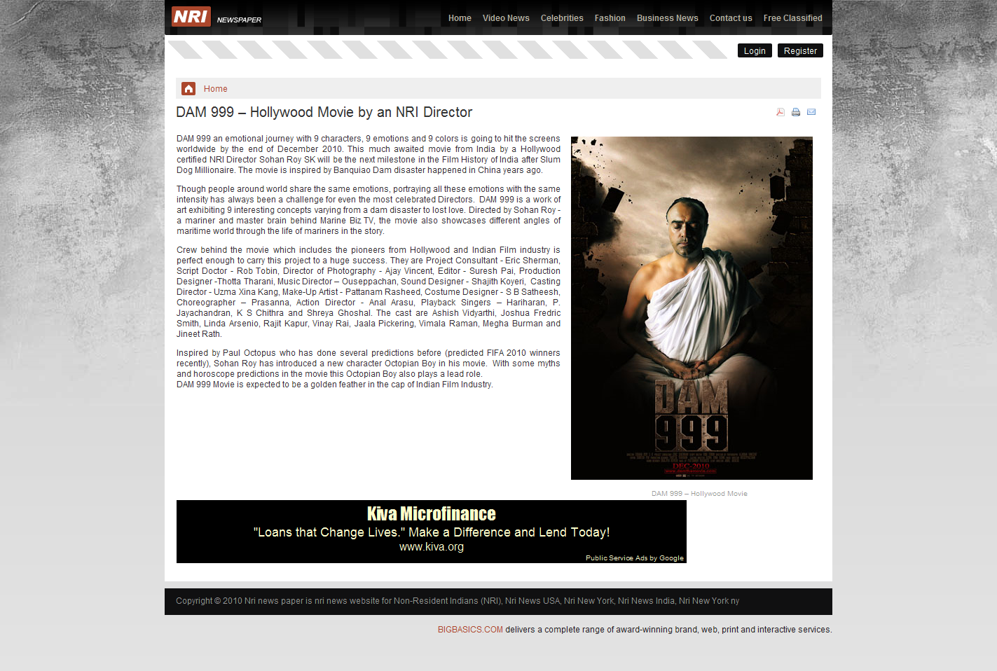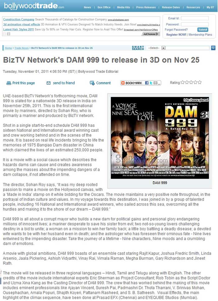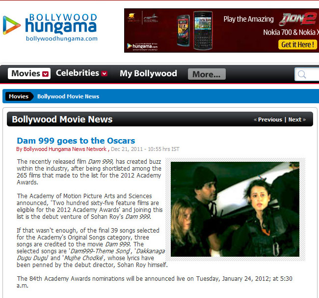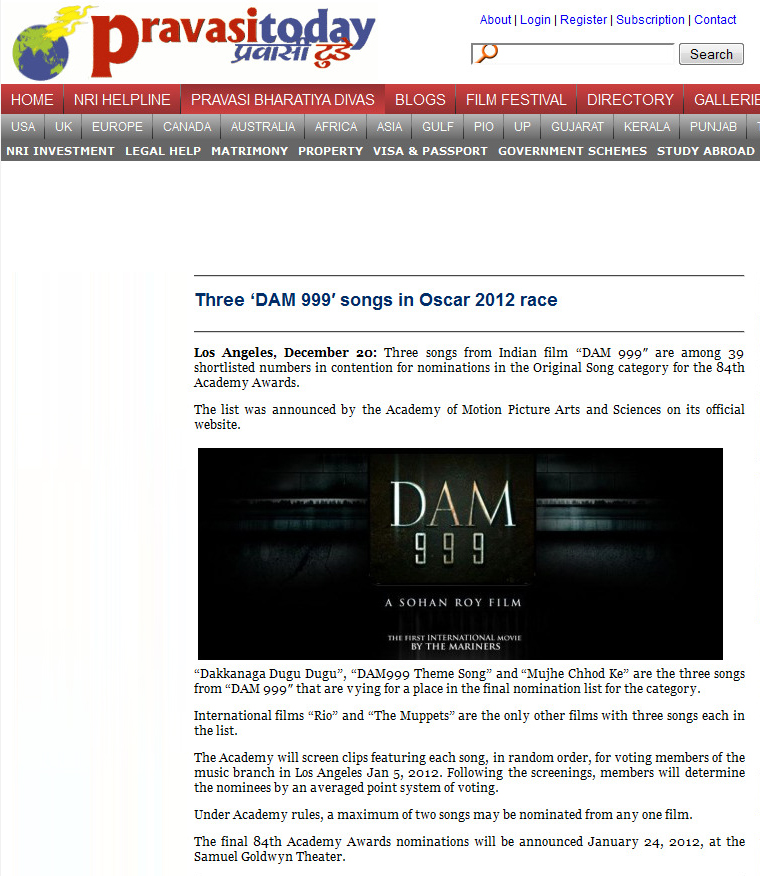 - Sohan Roy's Dam999 enters Oscar race -Pranaamindia.com