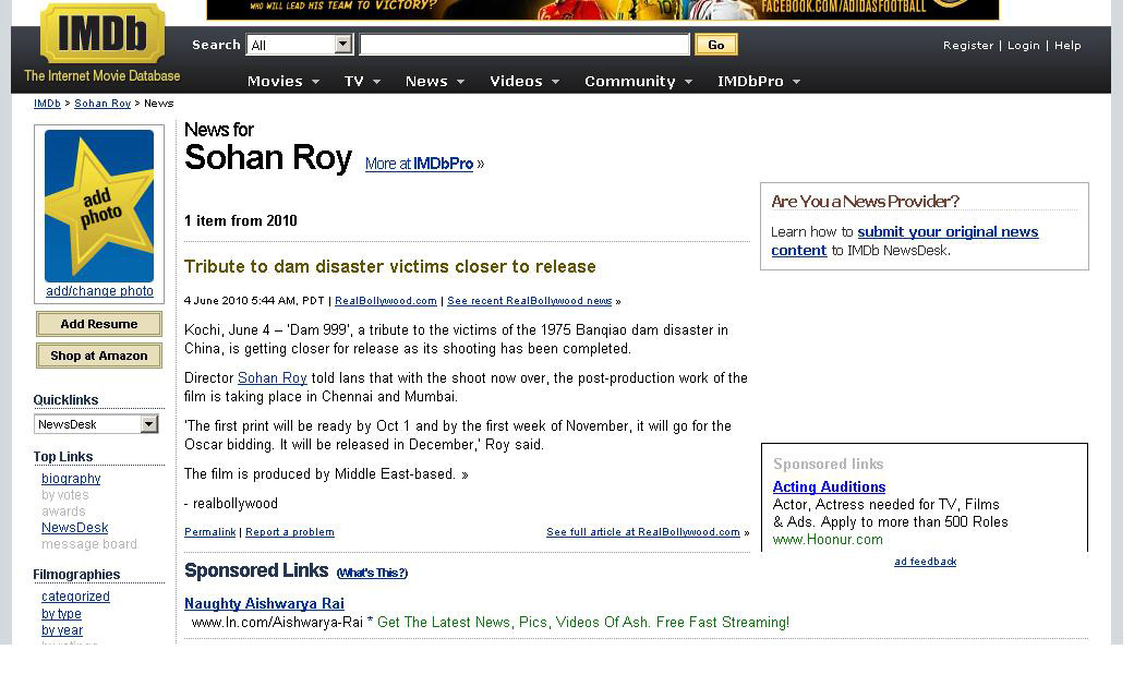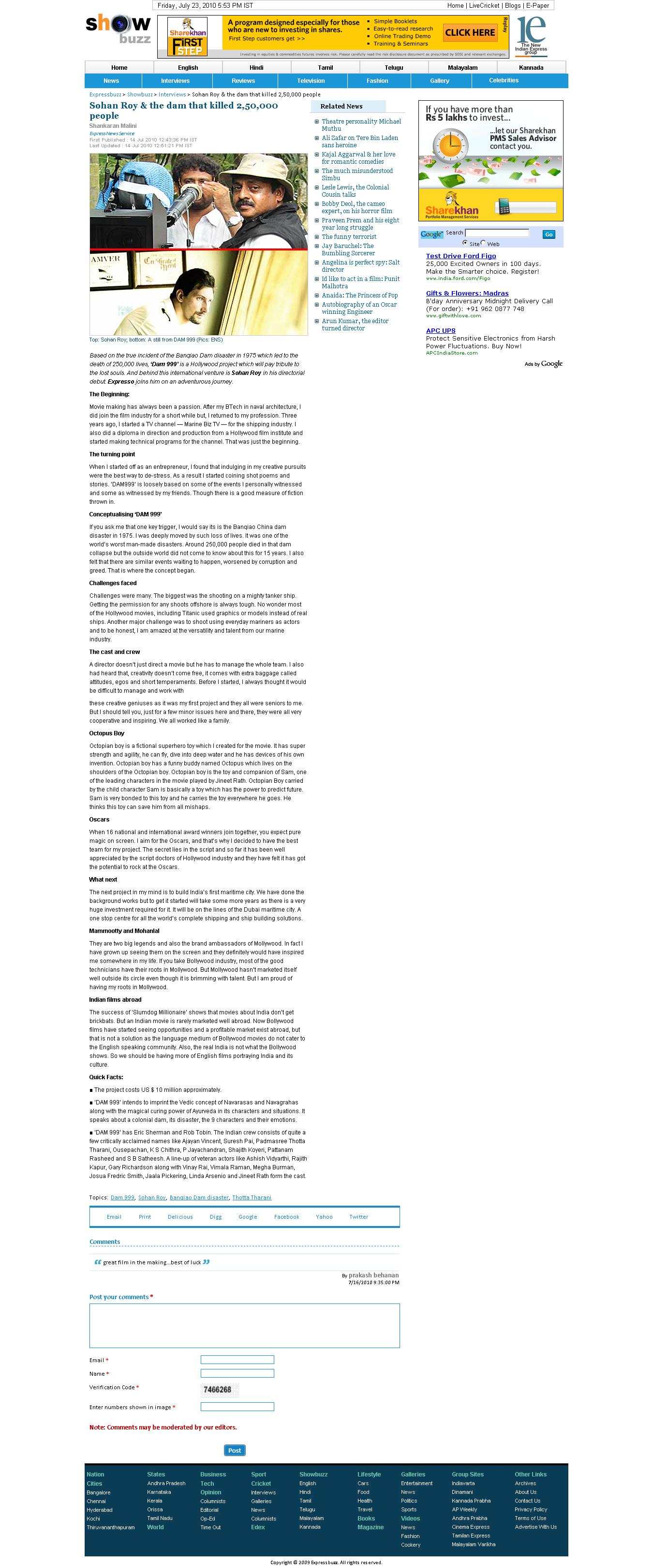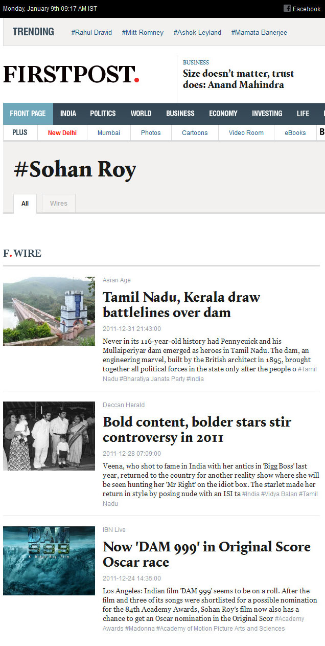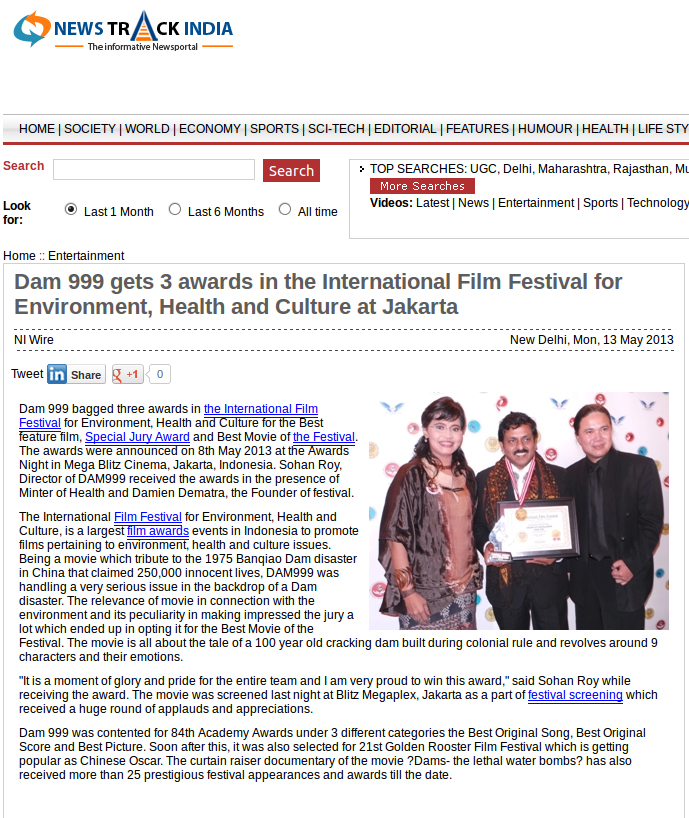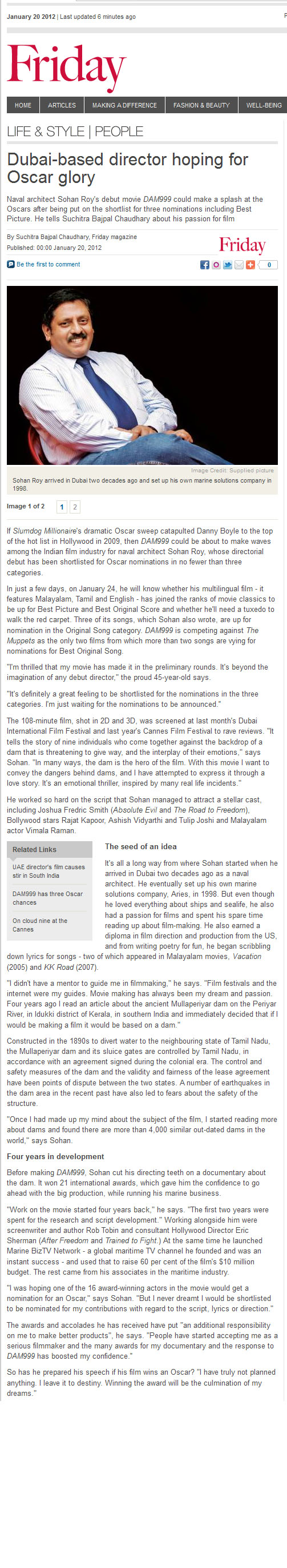 - Sohan Roy's Dam999 enters Oscar race -Pranaamindia.com