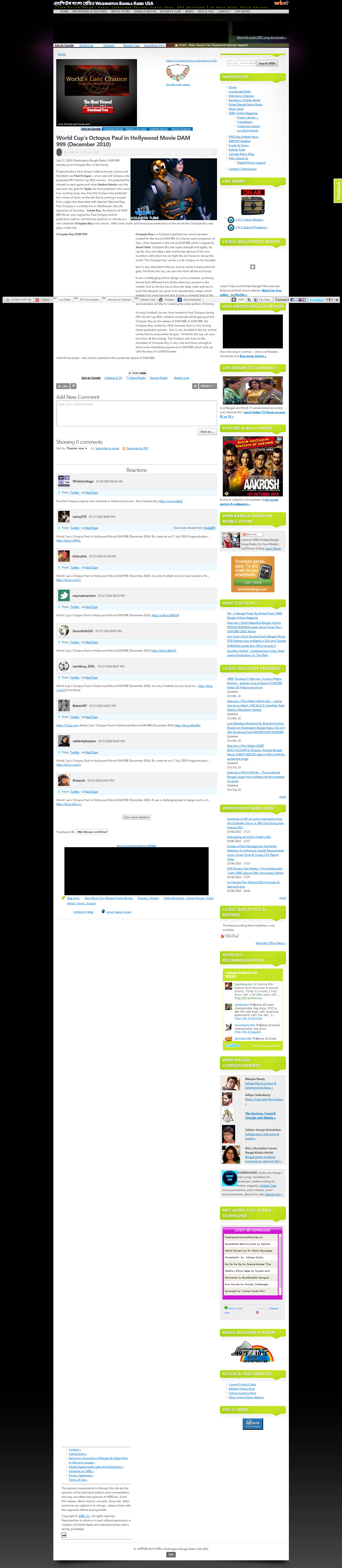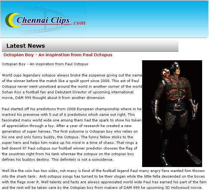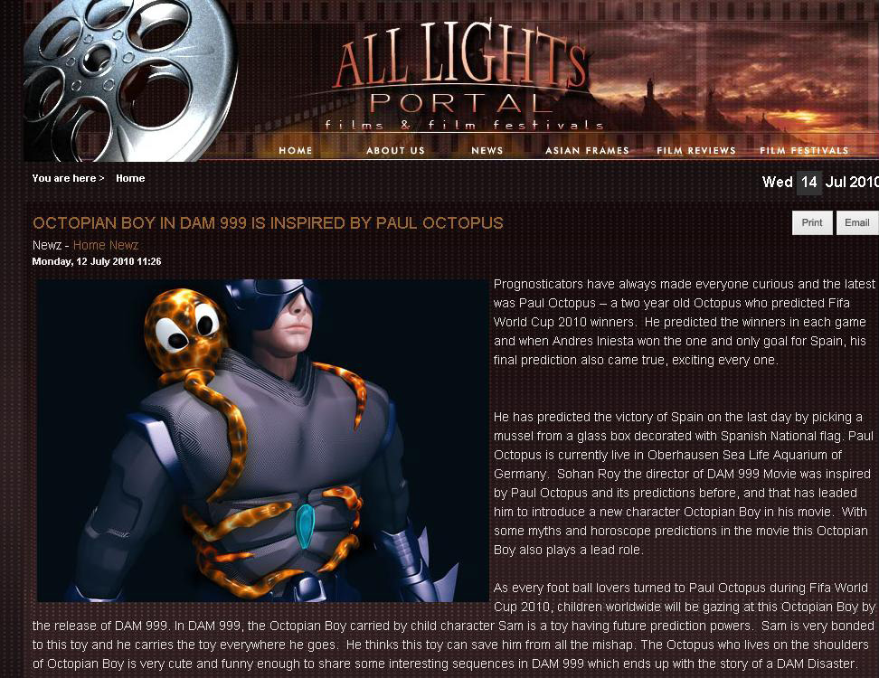 - World Cup's Octopus Paul in Hollywood Movie DAM999- Washington Bangla Radio