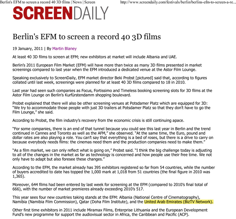 - Berlin's EFM to screen a record 40 3D films -Screendaily