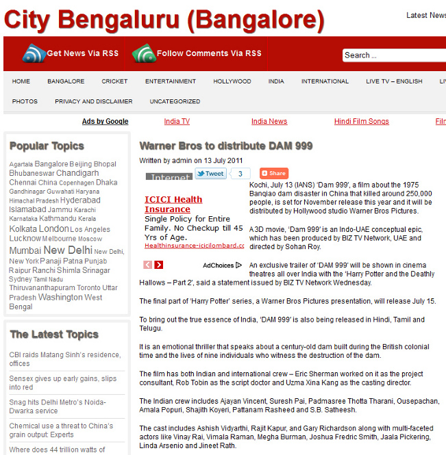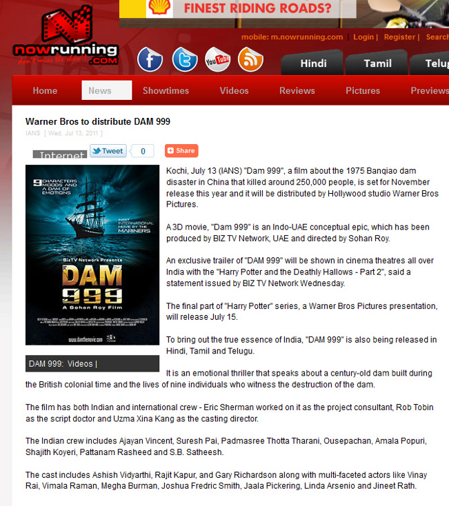 - Warner Bros to distribute DAM999 - Bollywooddemand.com