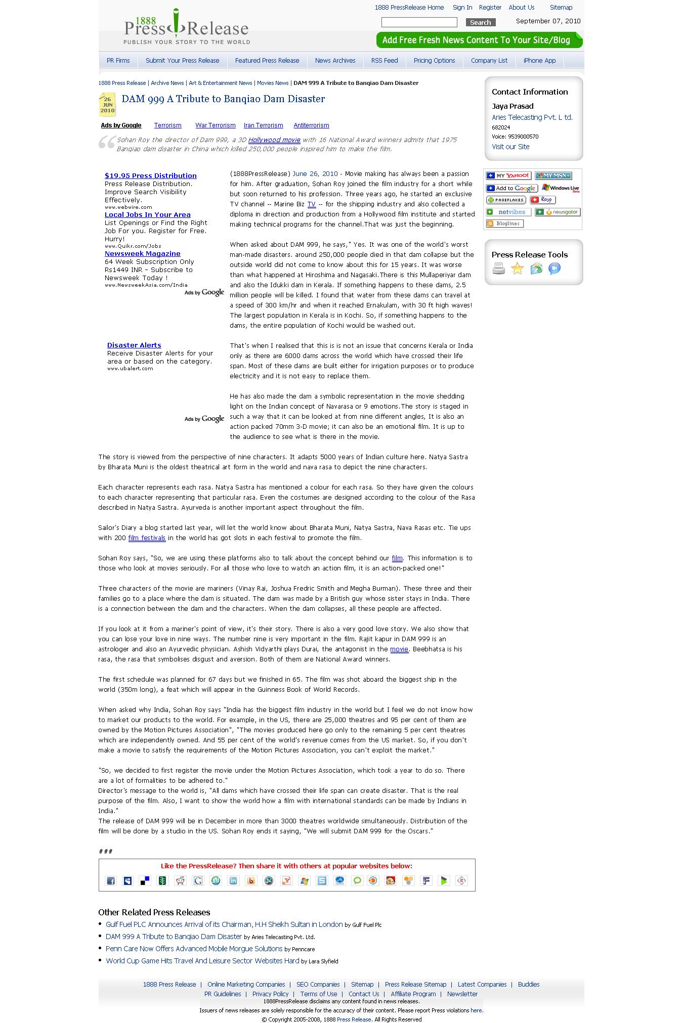 - DAM999 a tribute to Banqiao Disaster - 1888 Press Release