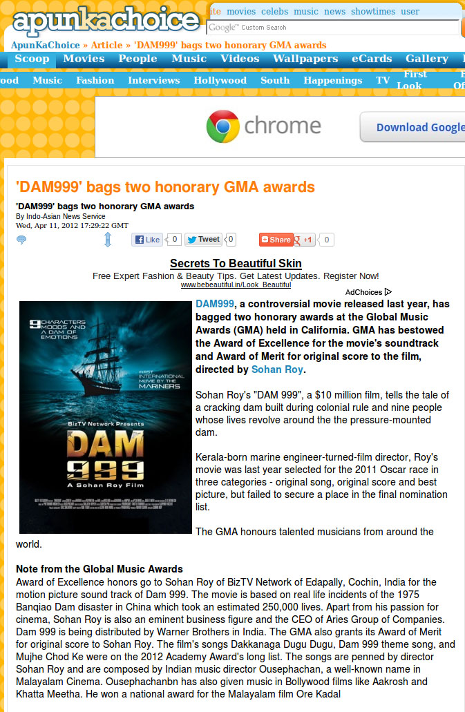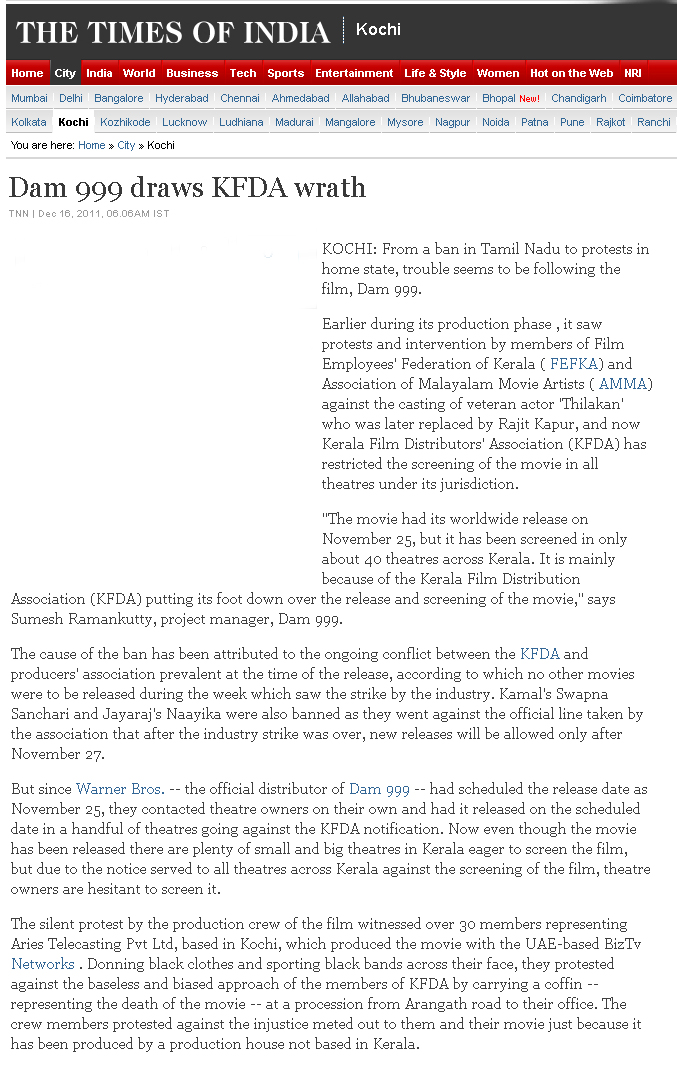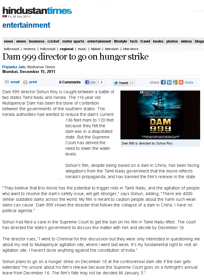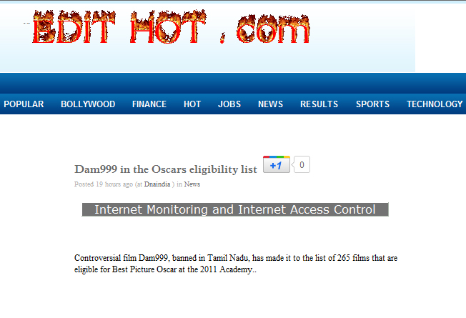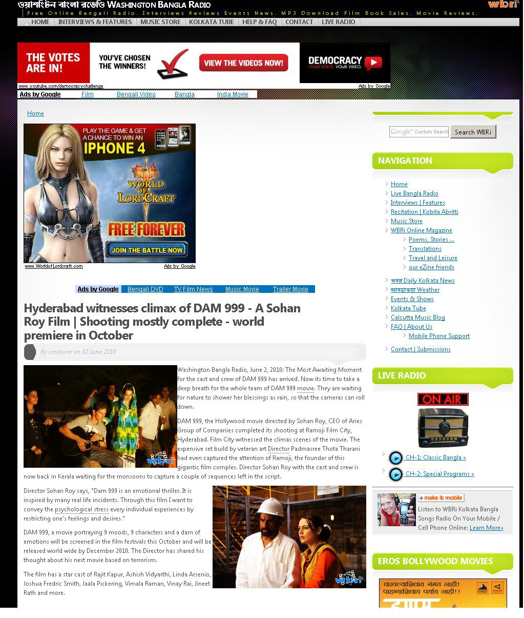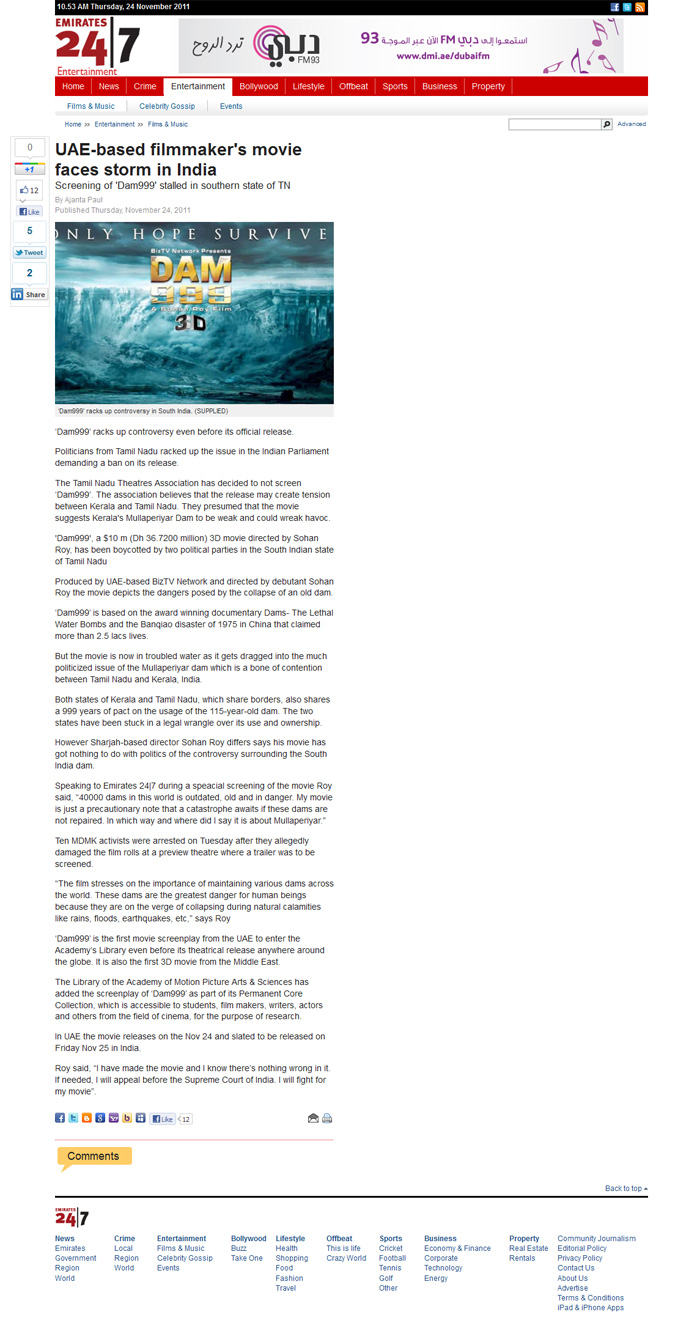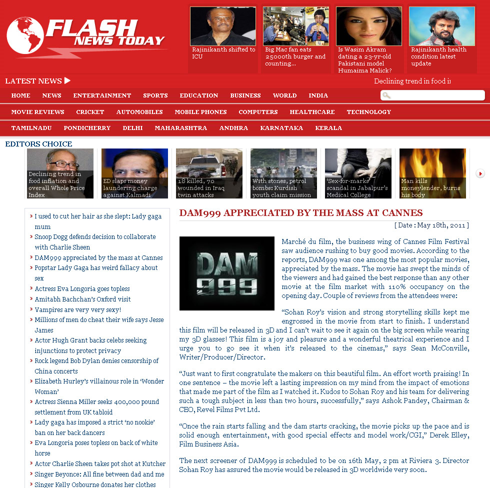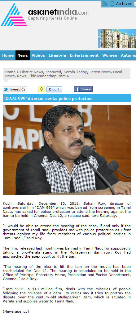 - Controversial 'DAM 999' makes to the ballot list for Oscars 2011 -Andhrawishesh.com