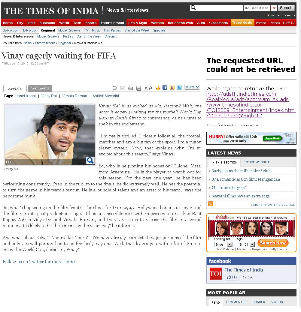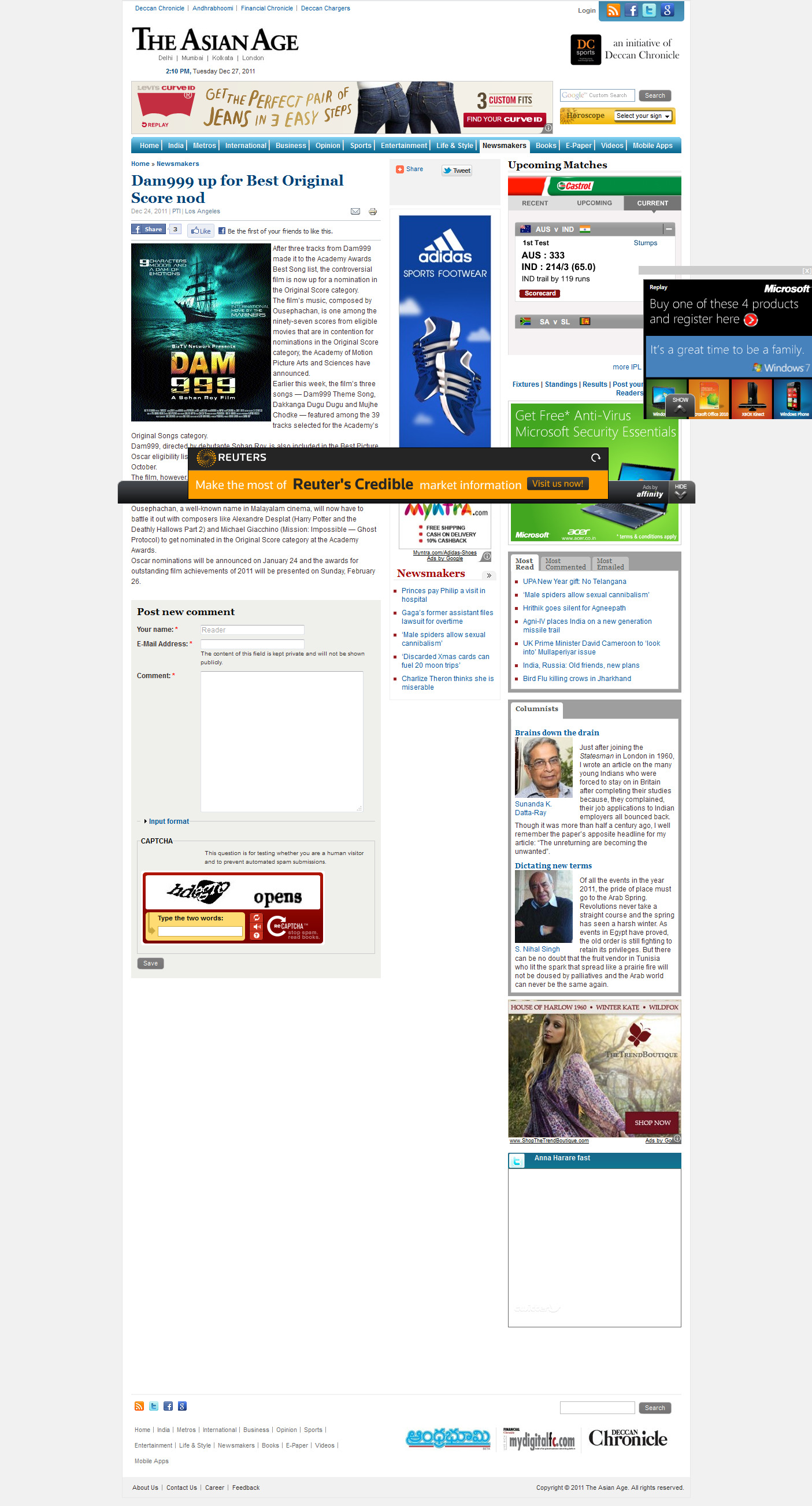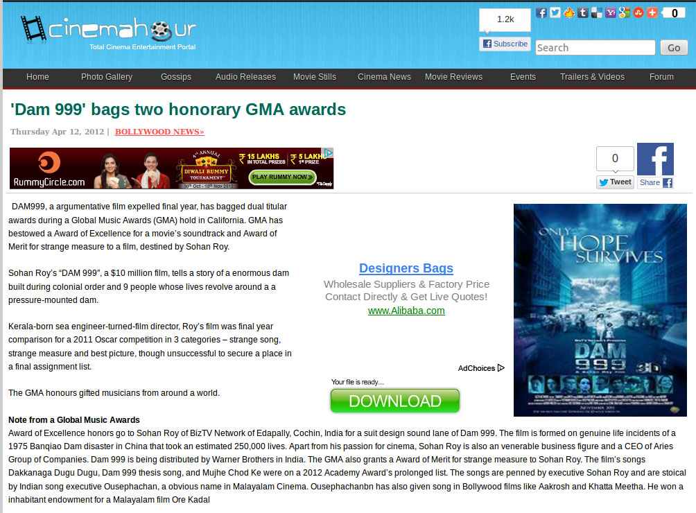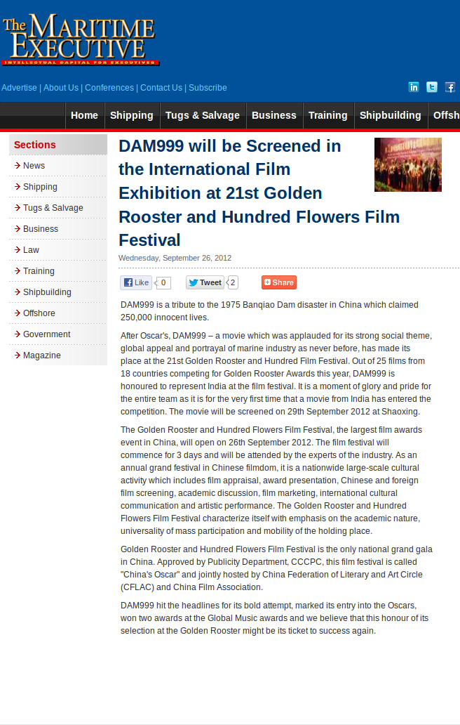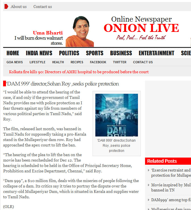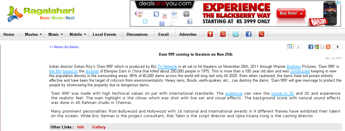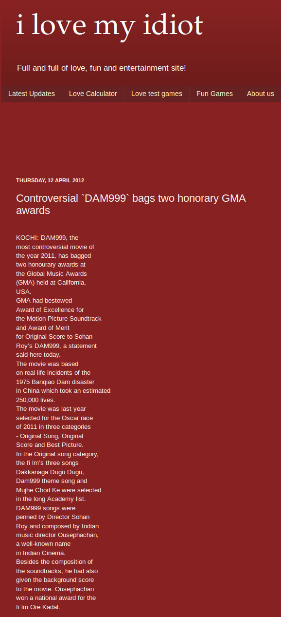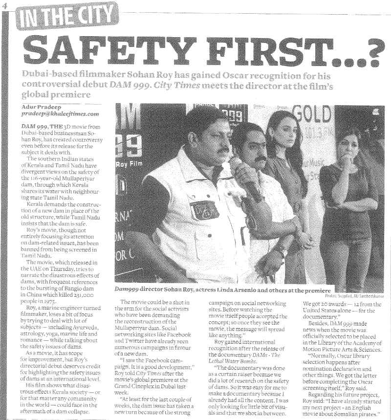 - Controversial 'DAM 999' makes to the ballot list for Oscars 2011 -Andhrawishesh.com