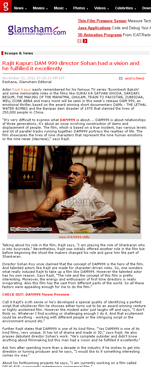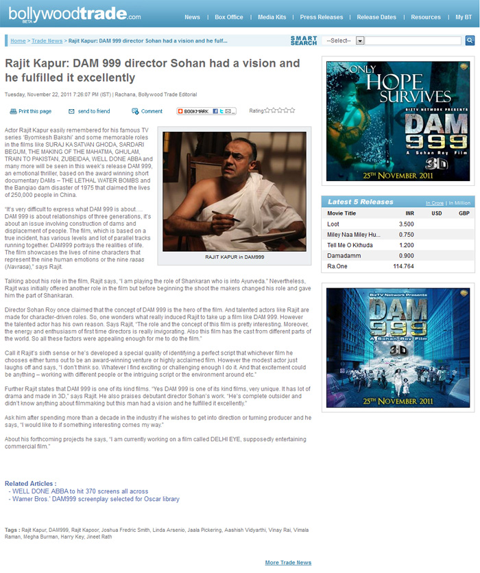 - Rajit Kapur: DAM999 director Sohan had a vision and he fulfilled it excellently - bollywoodtrade.com