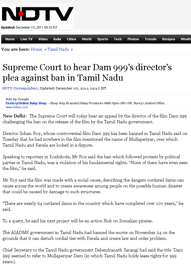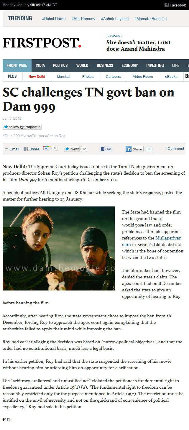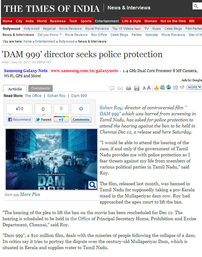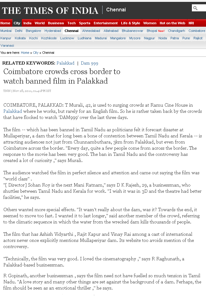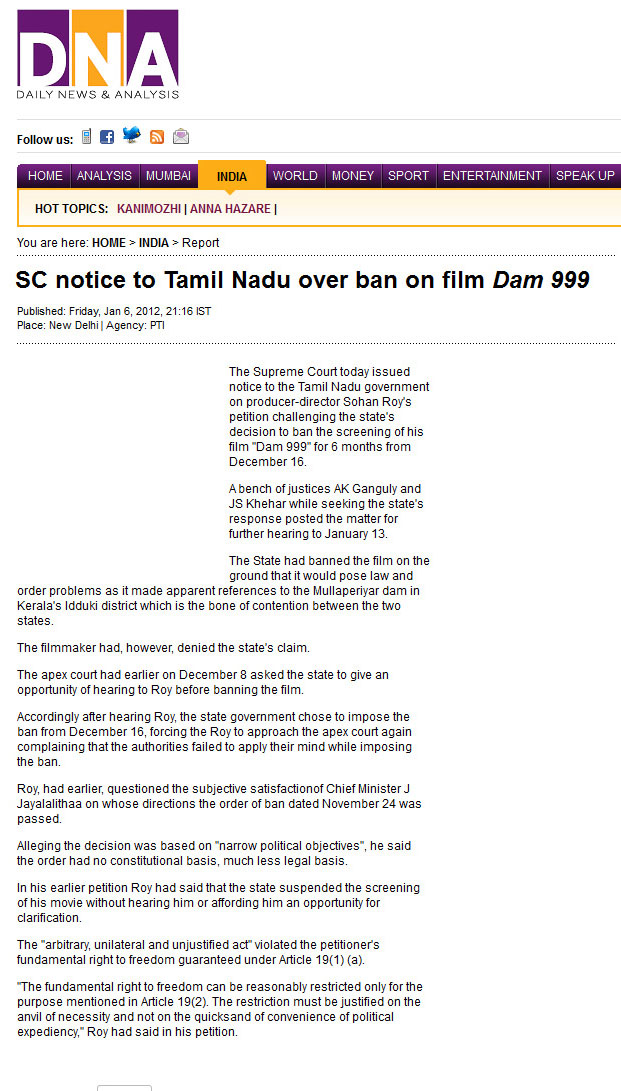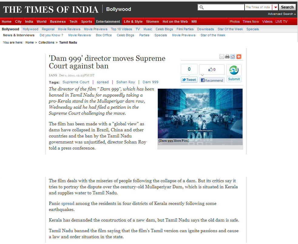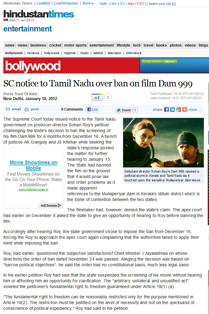 - 'DAM999' director moves Supreme Court against ban - timesofindia.indiatimes.com