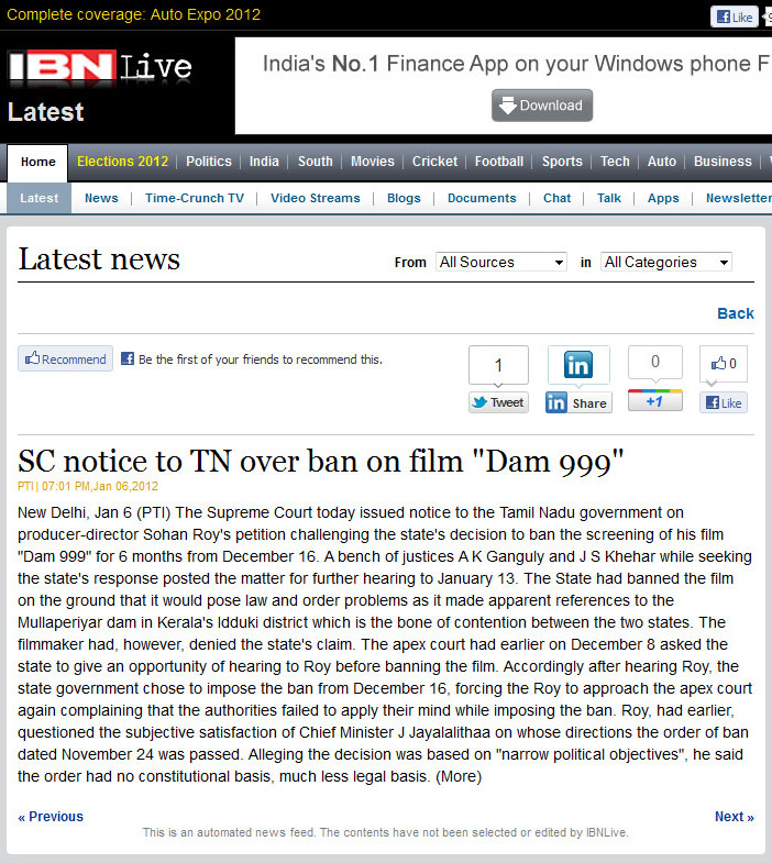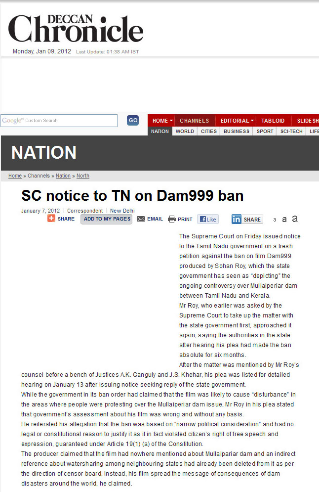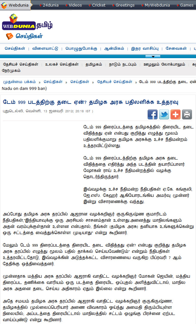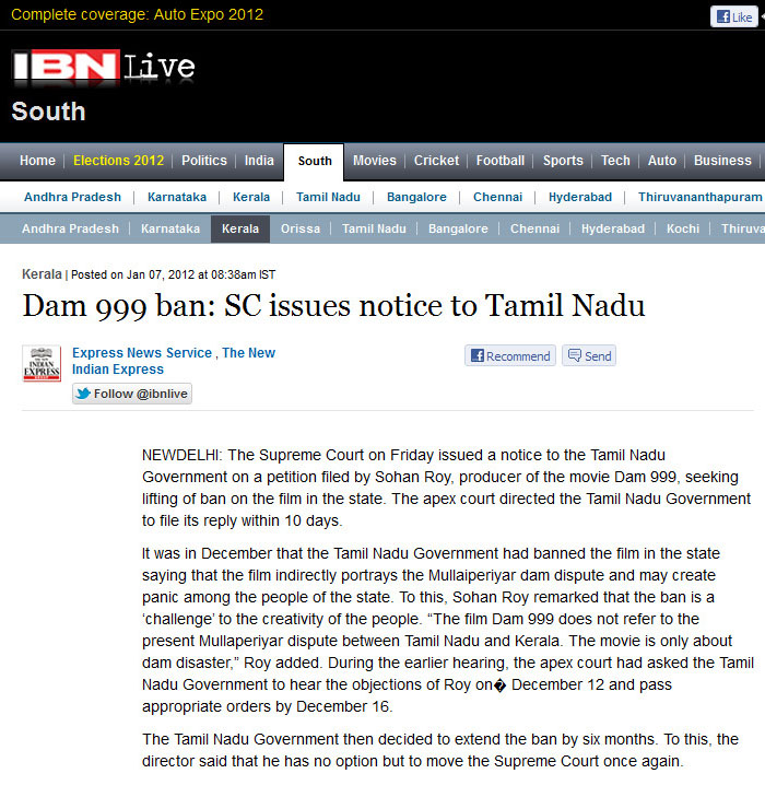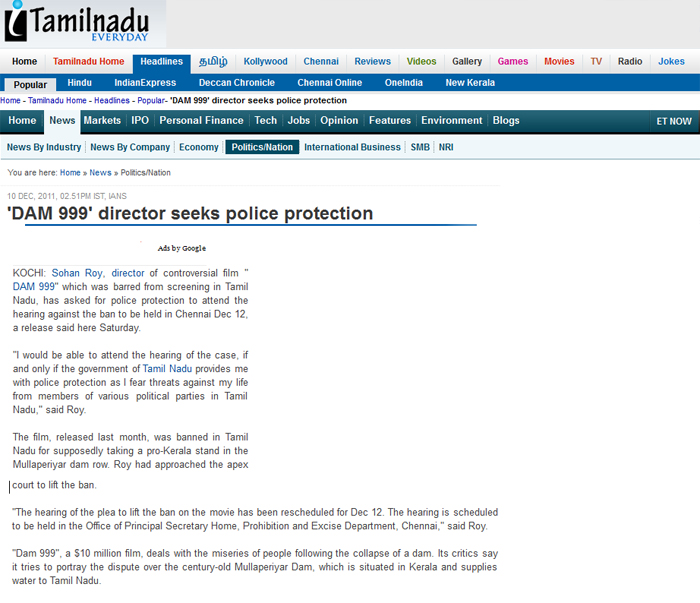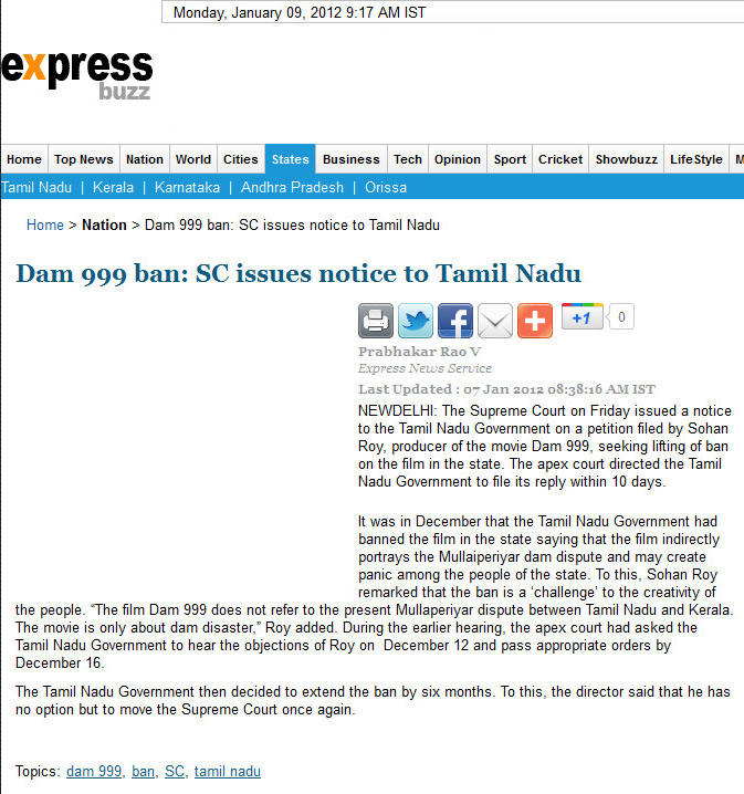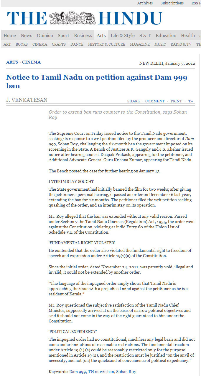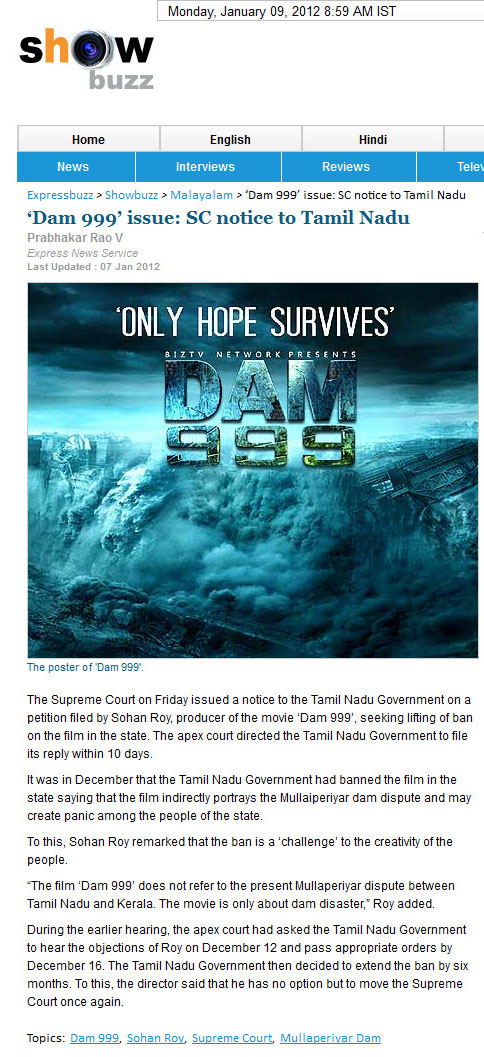 - 'DAM999' director moves Supreme Court against ban - timesofindia.indiatimes.com