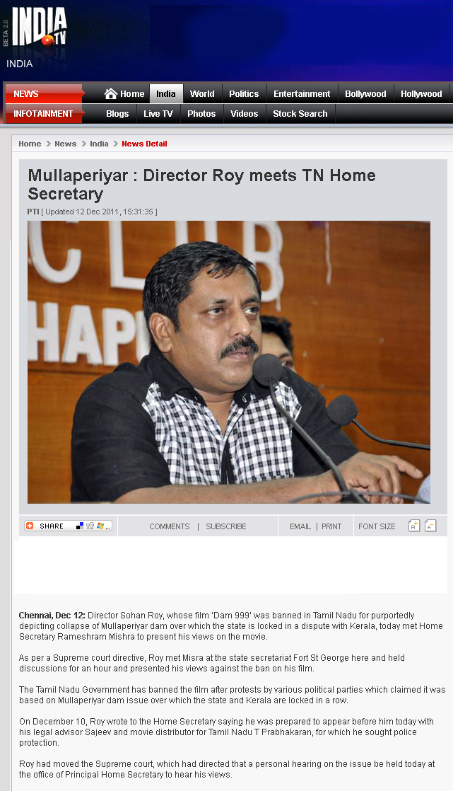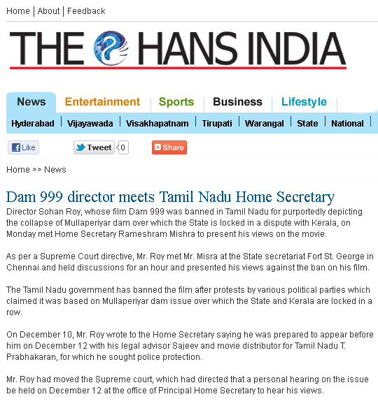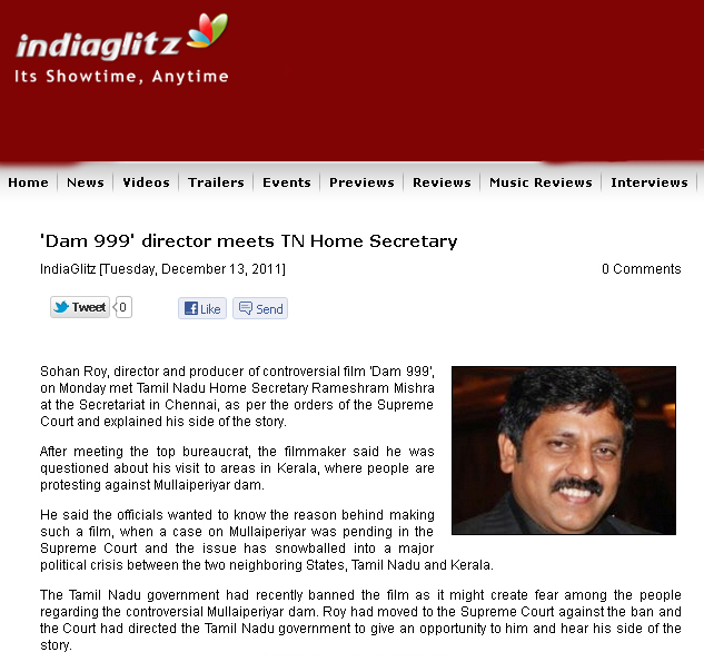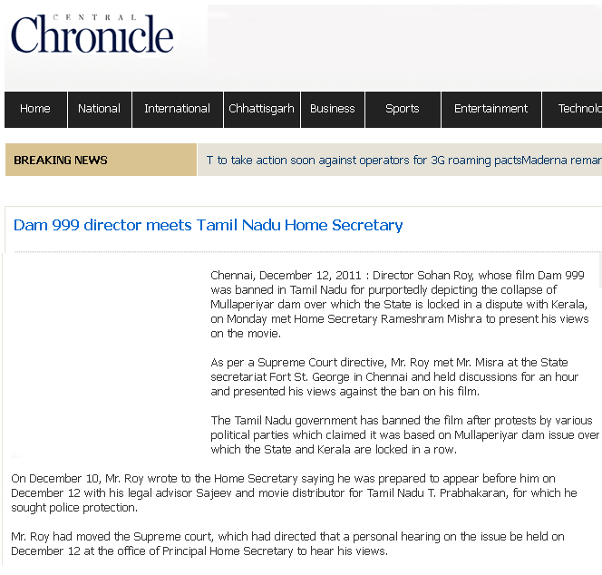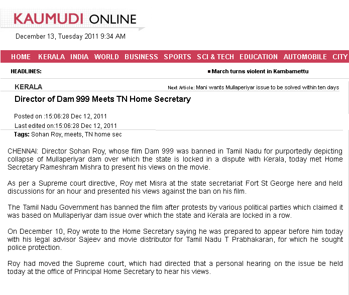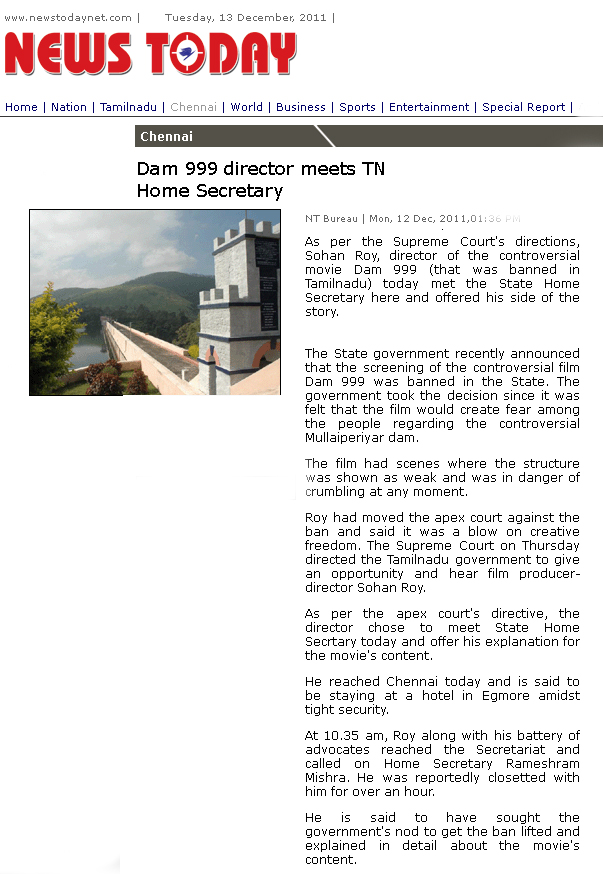- DAM999 director meets TN Home Secretary - Newstodaynet.com