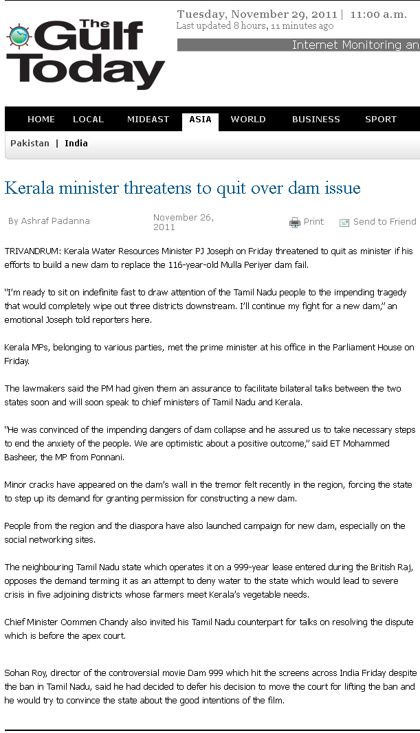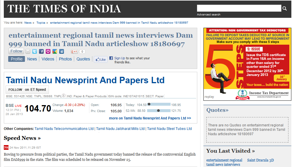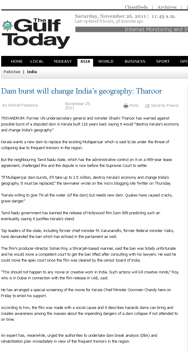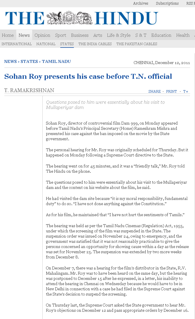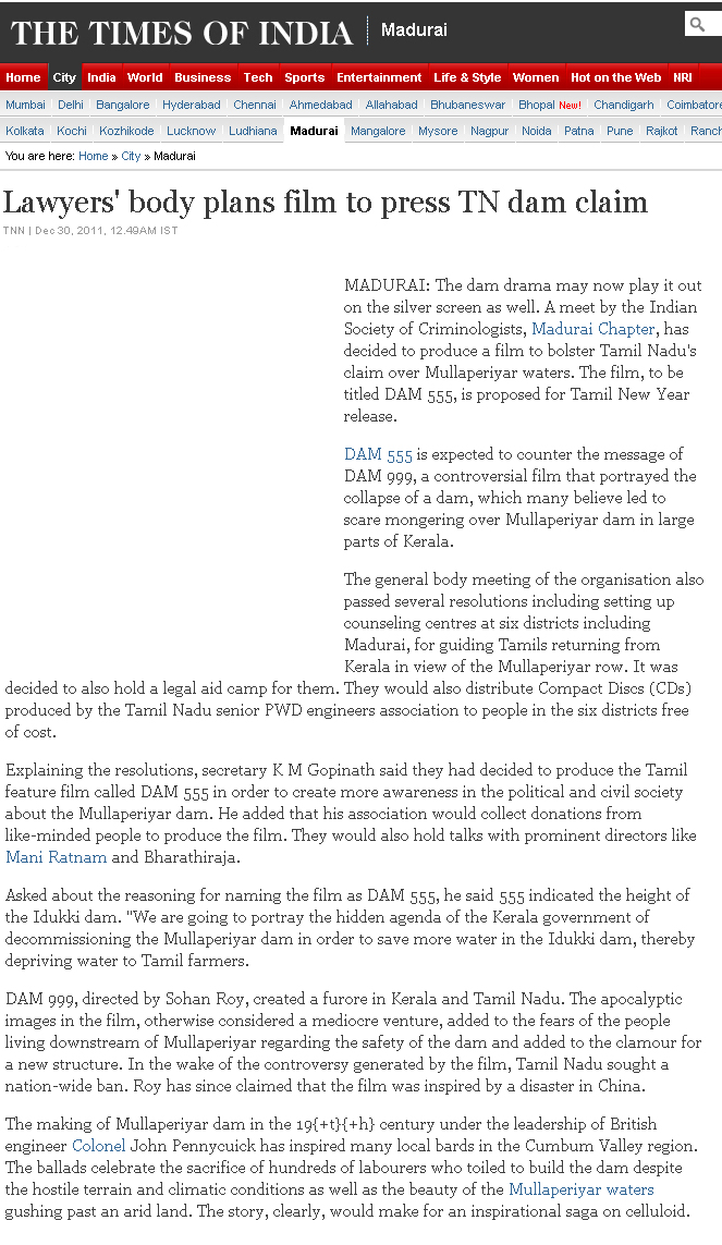- DAM999 director meets TN Home Secretary - Newstodaynet.com