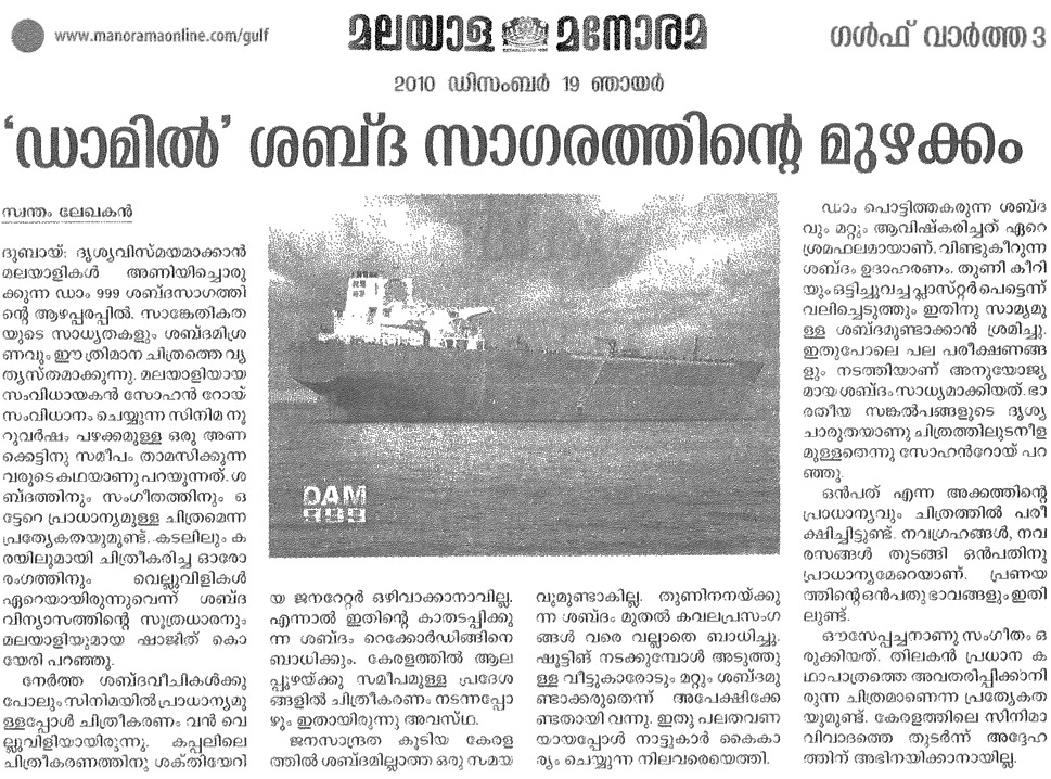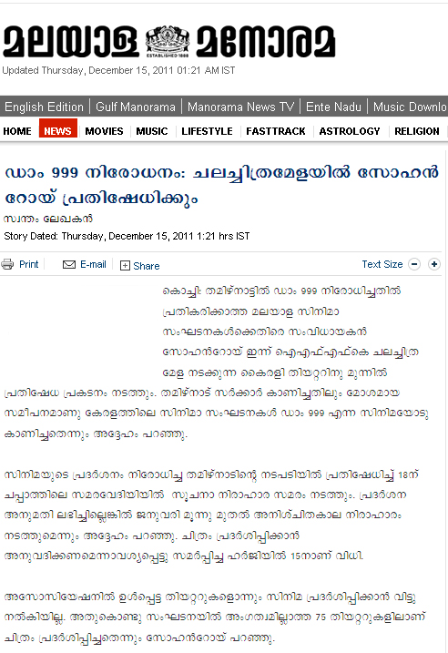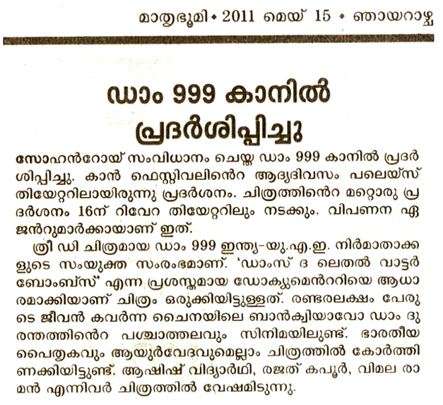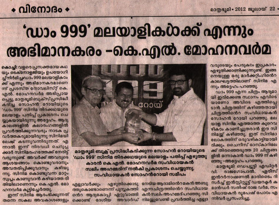 - DAM999' screenplay in Oscar library Manoramaonline.com