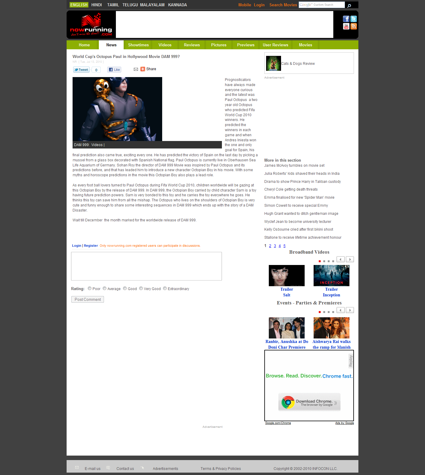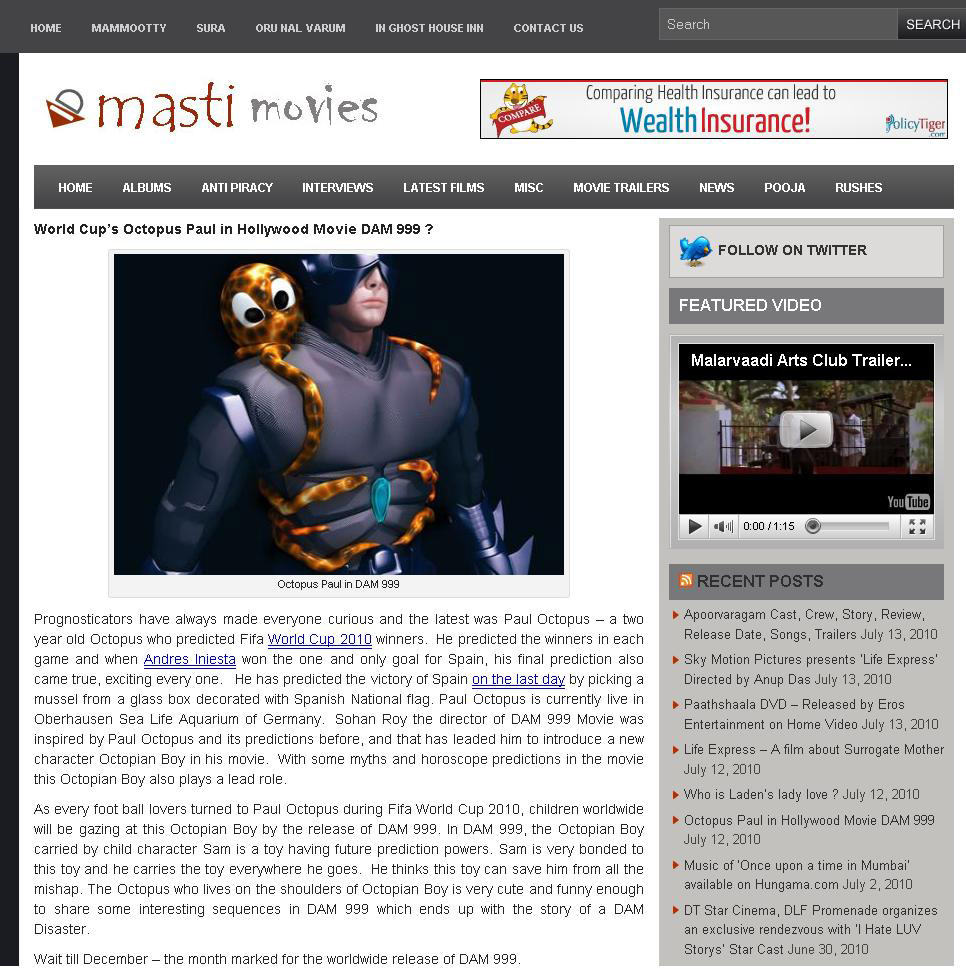- World Cups Octopus Paul in Hollywood Movie DAM999 - Masti Movies