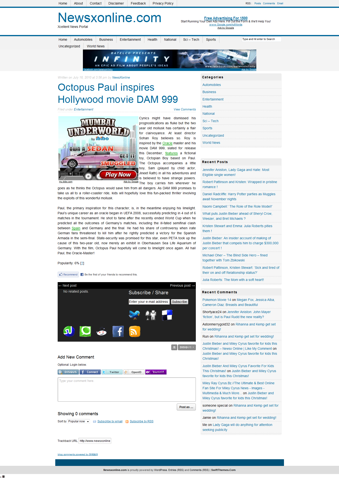 - Octopus Paul inspires Hollywood movie DAM999-Newsxonline