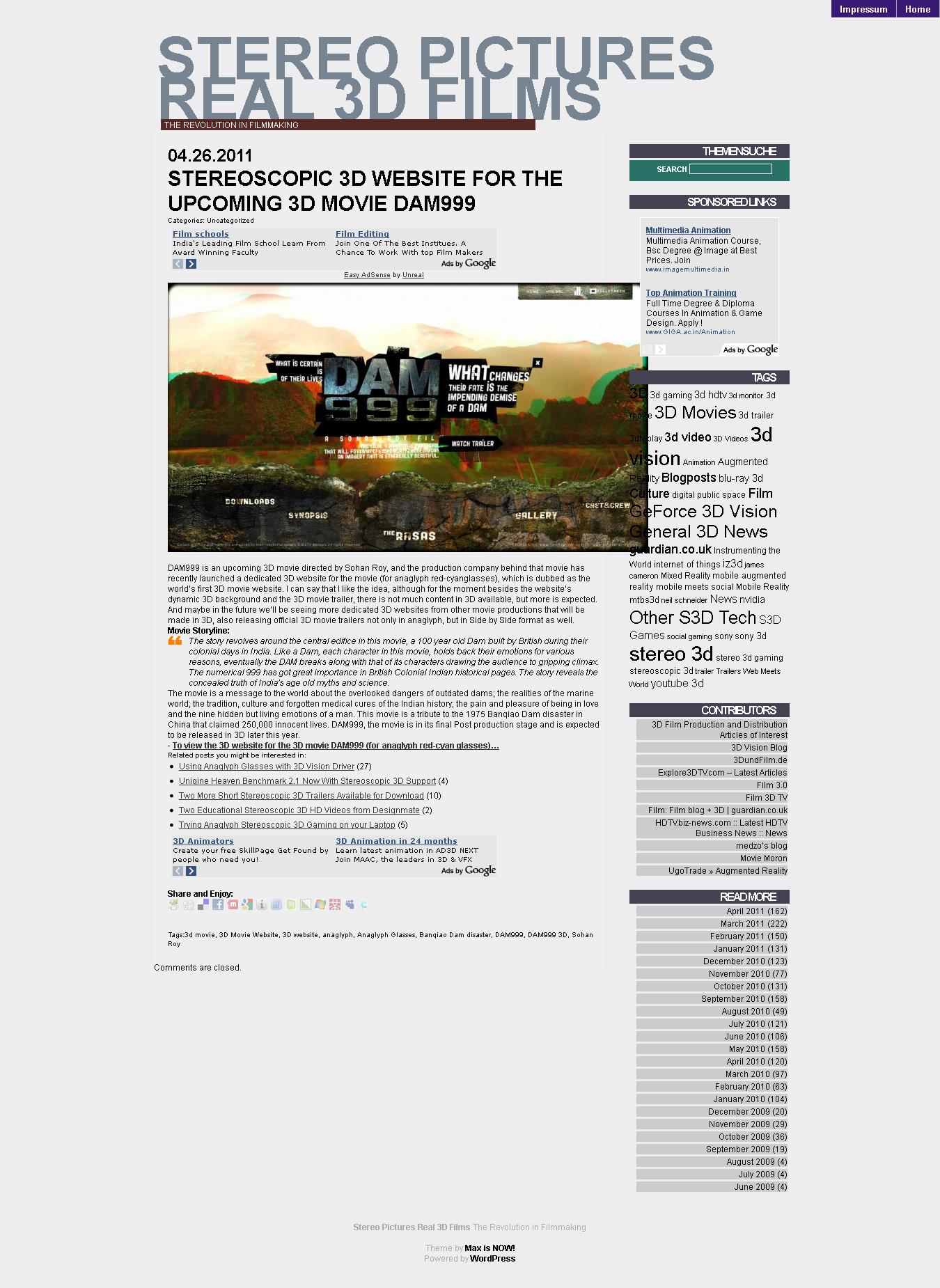 - Stereoscopic 3D Website for the Upcoming 3D Movie DAM999 - stereopictures.de