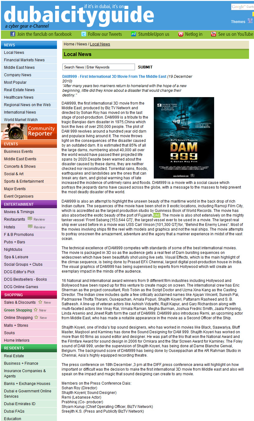 - DAM999, First International 3D Movie From The Middle East - Dubai city Guide, Dubai