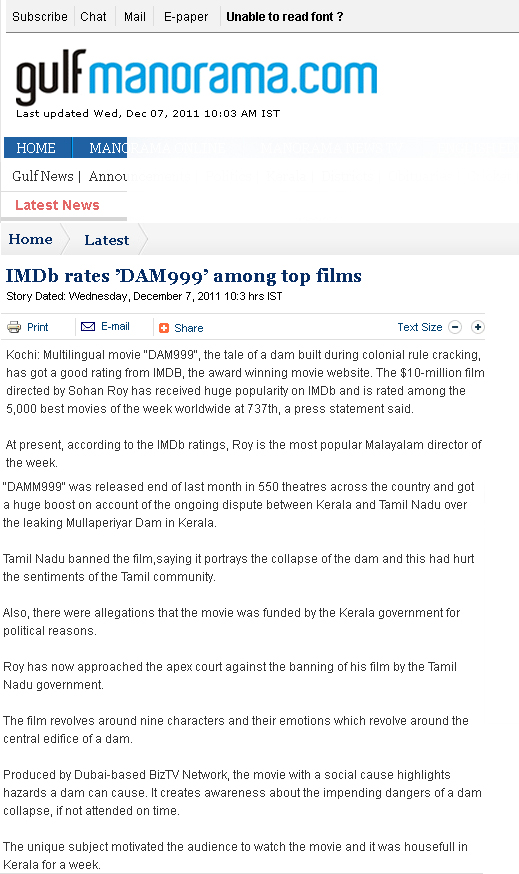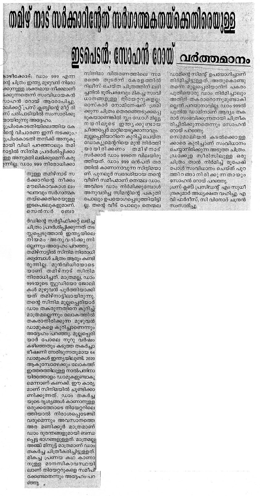 - DAM999 Trying To Reach Oscars -Keralaboxoffice.com