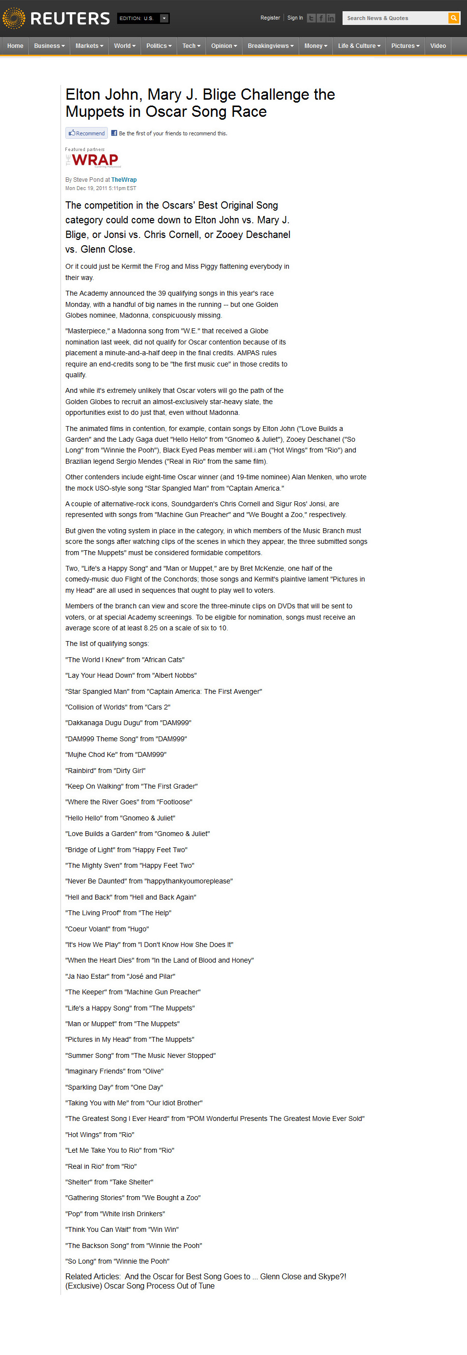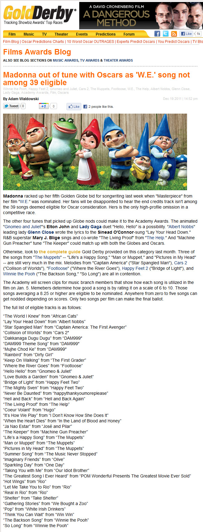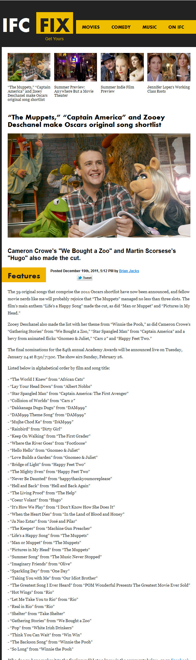 - Oscars' Best Song Short List: The National, She & Him (But No Madonna) -Wetheotaku.com