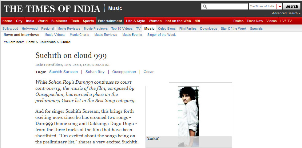 - 'DAM999' songs in Oscar race - Newshopper.sulekha.com