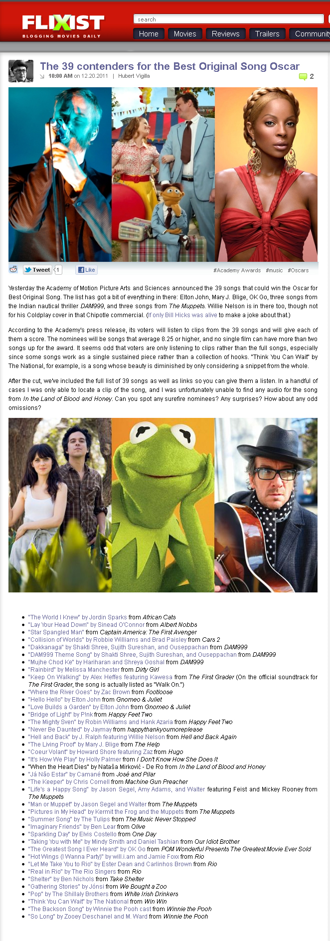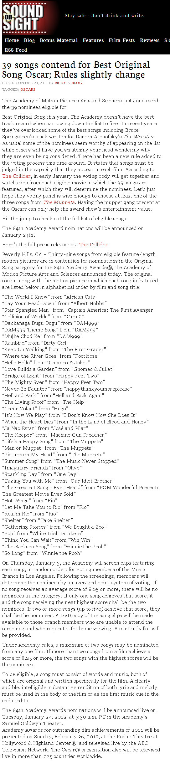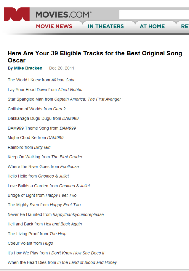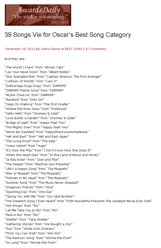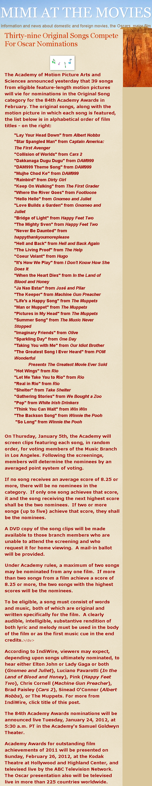 - Thirty-nine Original Songs Compete For Oscar Nominations - Mimiatthemovies.blogspot.com