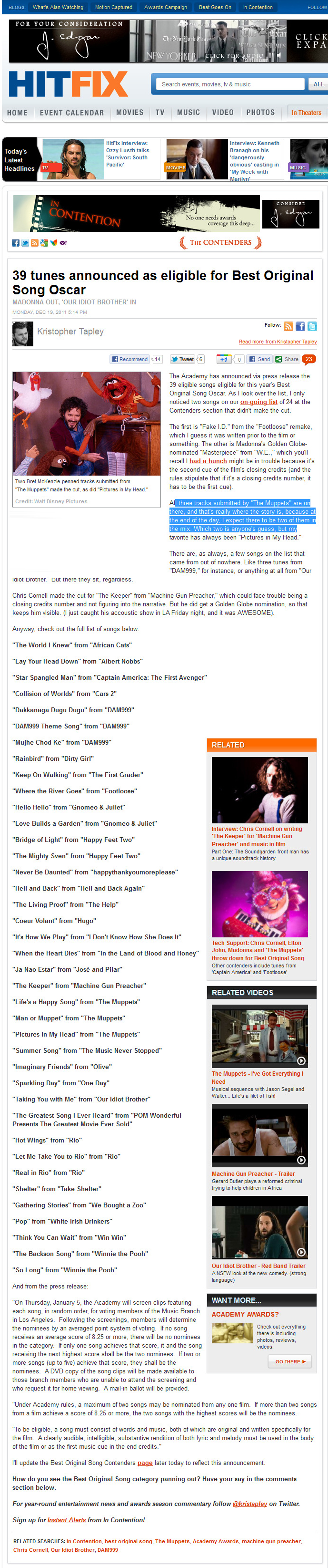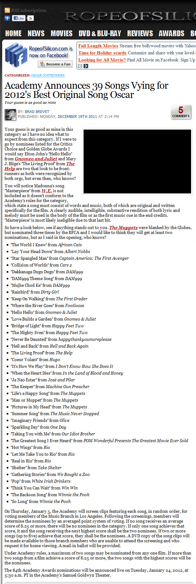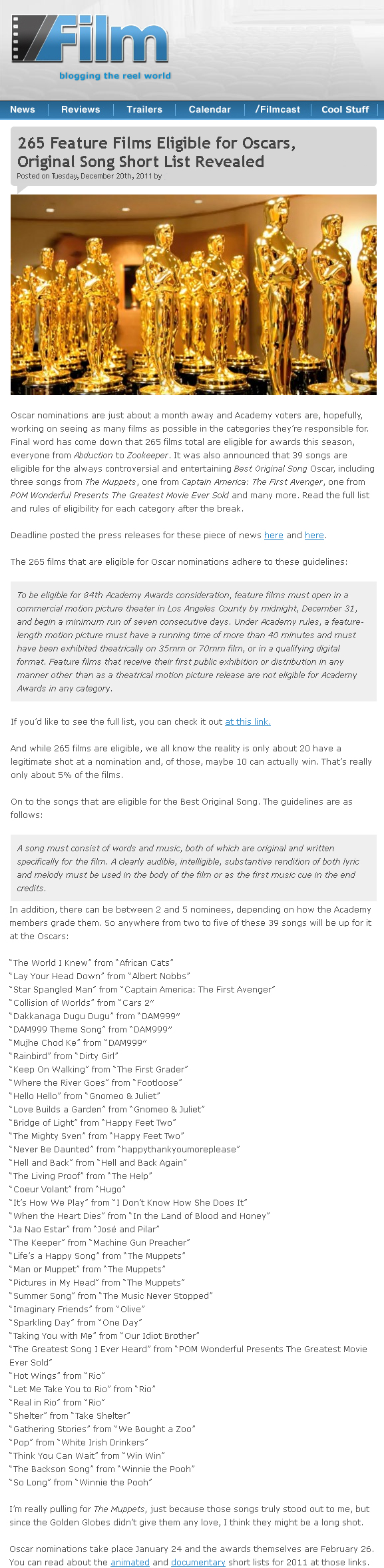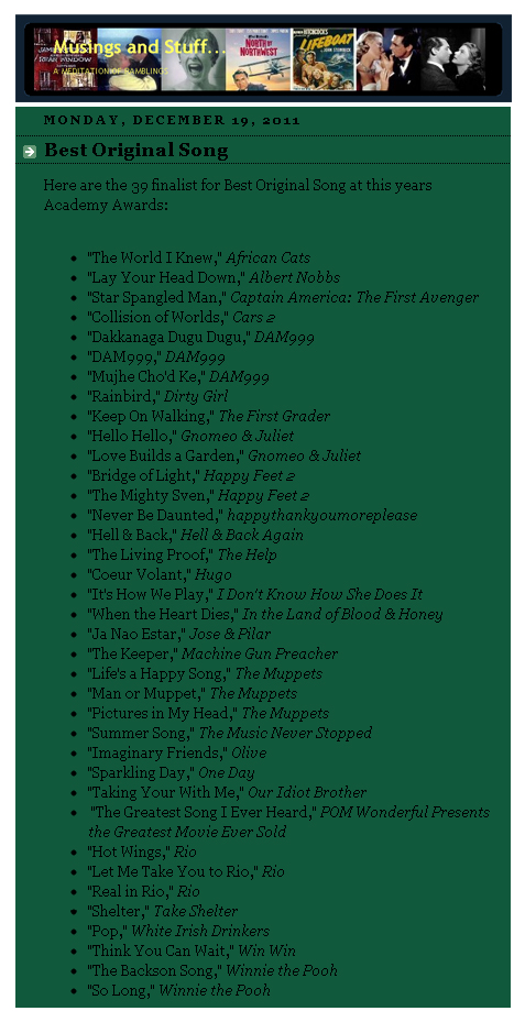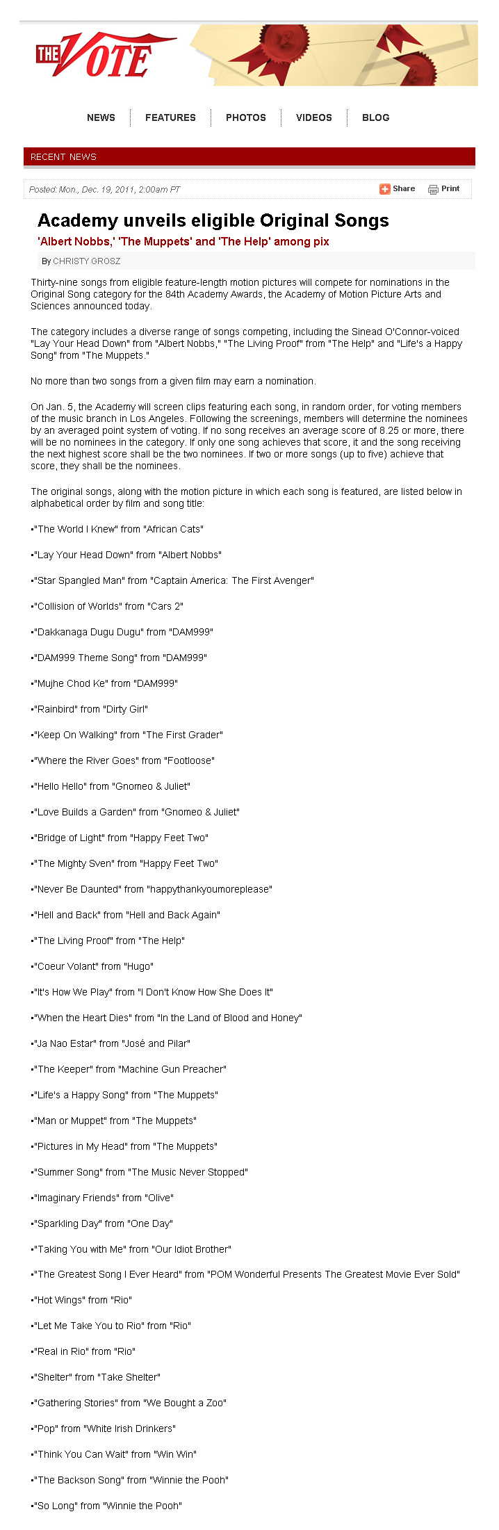 - Thirty-nine Original Songs Compete For Oscar Nominations - Mimiatthemovies.blogspot.com
