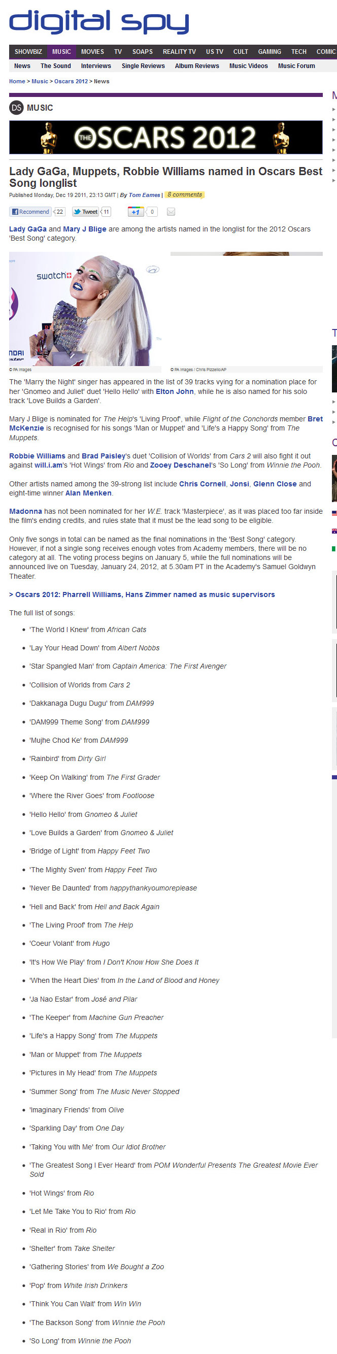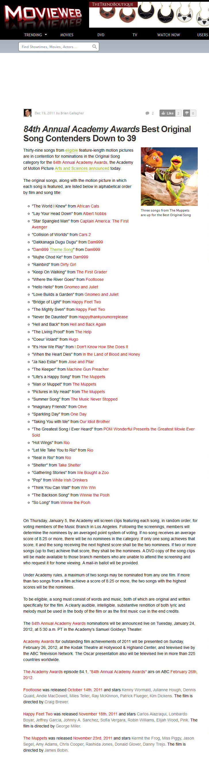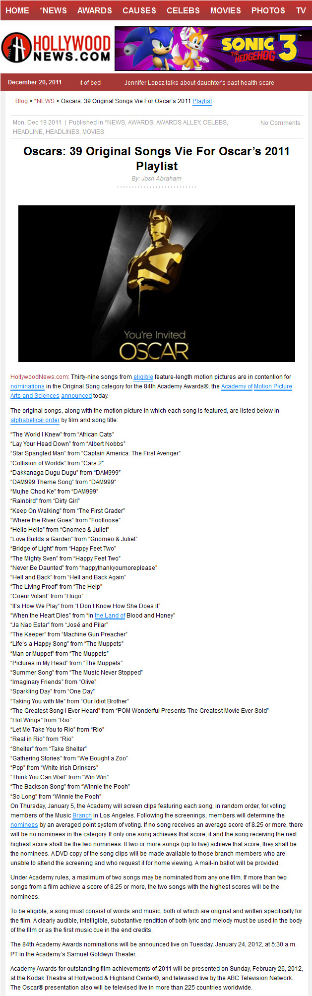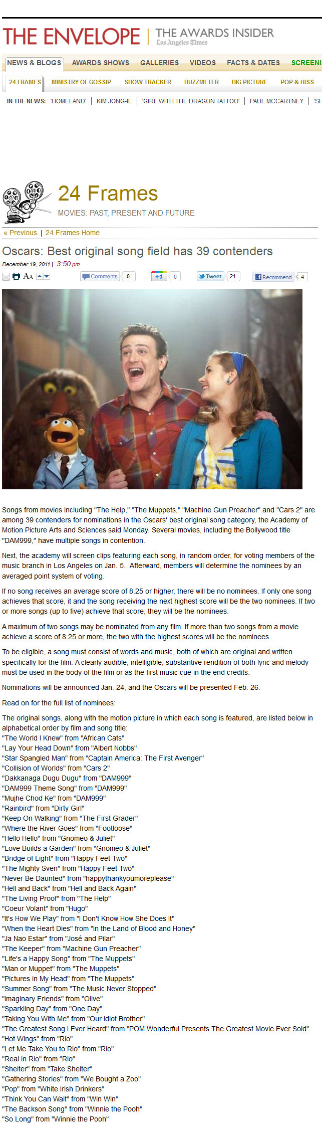 - Thirty-nine Original Songs Compete For Oscar Nominations - Mimiatthemovies.blogspot.com