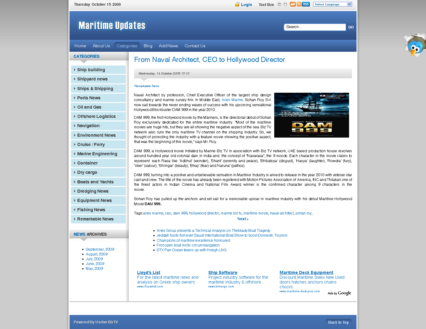 - From Naval Architect , CEO to Hollywood Director- Maritime updates