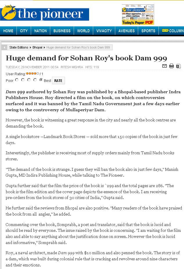 - Huge demand for Sohan Roy's book DAM999 - dailypioneer.com