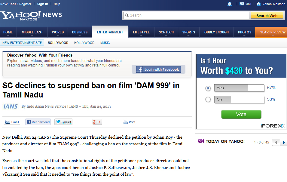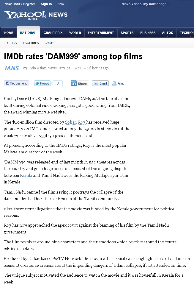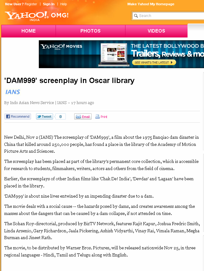 - 'DAM999' screenplay in Oscar library -Yahoomail