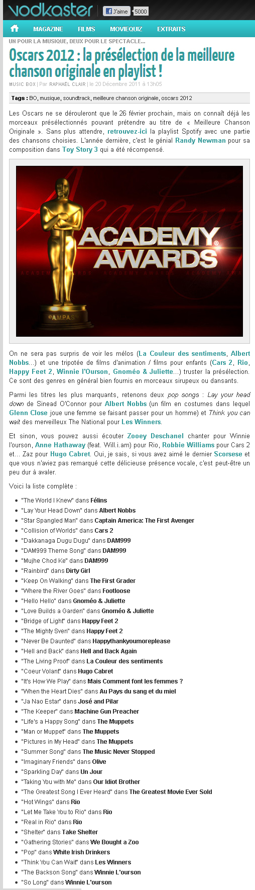 - Oscars Best Picture list has DAM999 -Vodkaster.com
