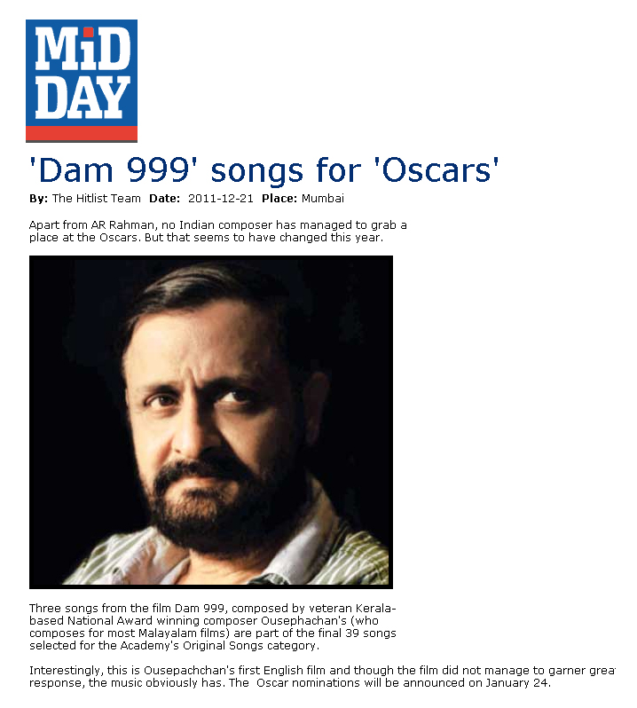 - 'DAM999' songs in Oscar race Indiatalkies.com
