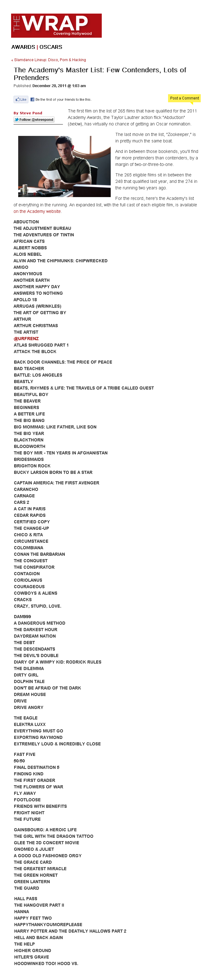 - The Academy's Master List: Few Contenders, Lots of Pretenders - Thewrap.com
