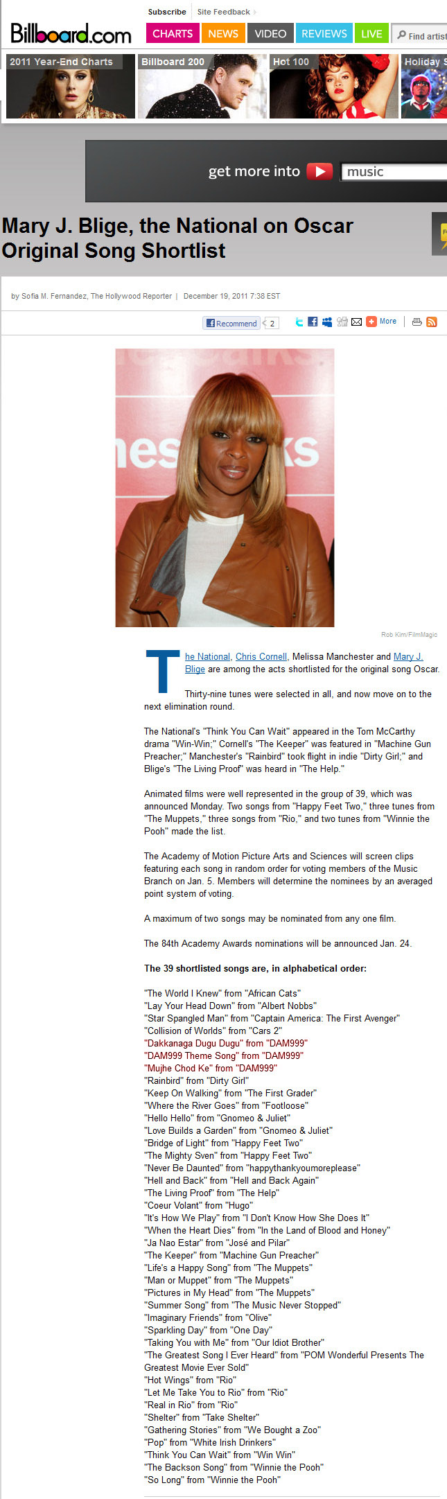 - 'DAM999', its three songs in Oscar race - Zimbio.com