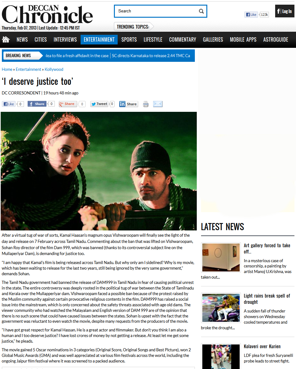 - Controversial 'DAM 999' tracks in Oscar race - Cinehour.com